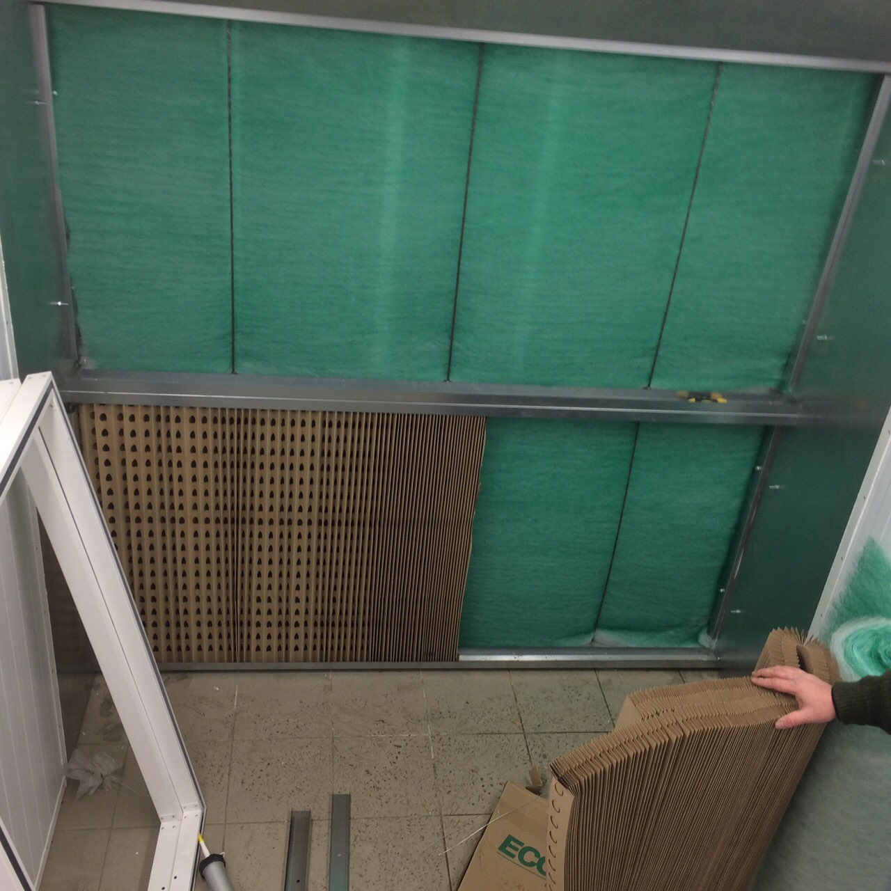 Для удаления остатков аэрозоля служит вторая ступень фильтрационной системы, представленная стекловолоконным фильтром типа Paint-Stop. Он имеет прогрессивную структуру и степень фильтрации до 98%