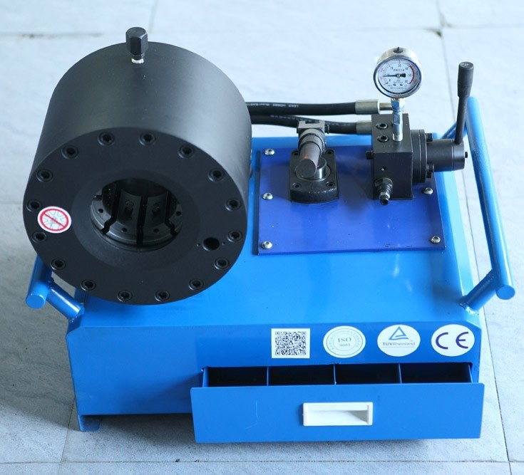 Обжимной пресс YJK-32S идеальное решение для опрессовки рукавов высокого давления размером до 1 1/4" 2SN, а также до 1" 4SP. Помимо этого пресс способен производить обжим промышленных шлангов до 2". Пресс имеет ручное управление и подойдет для использования в автомастерских и в полевых условиях, где нет электричества.