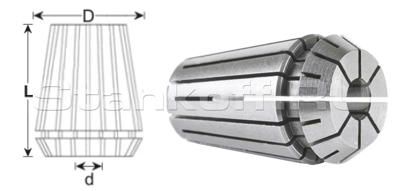 | Технические характеристики цанги ER16-5 (DIN 6499B) | |