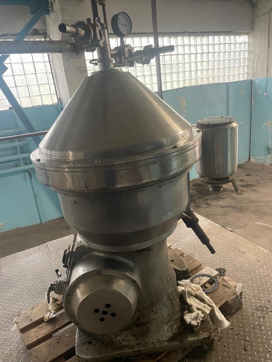Сепаратор А1-ВСЕ. Производитель: плавский машиностроительный завод. Предназначен для очистки и осветления разведенной мелассы в дрожжевой промышленности. Тип сепаратора - закрытый с автоматической периодической центробежной выгрузкой осадка. Состояние отличное. год производства не известен.