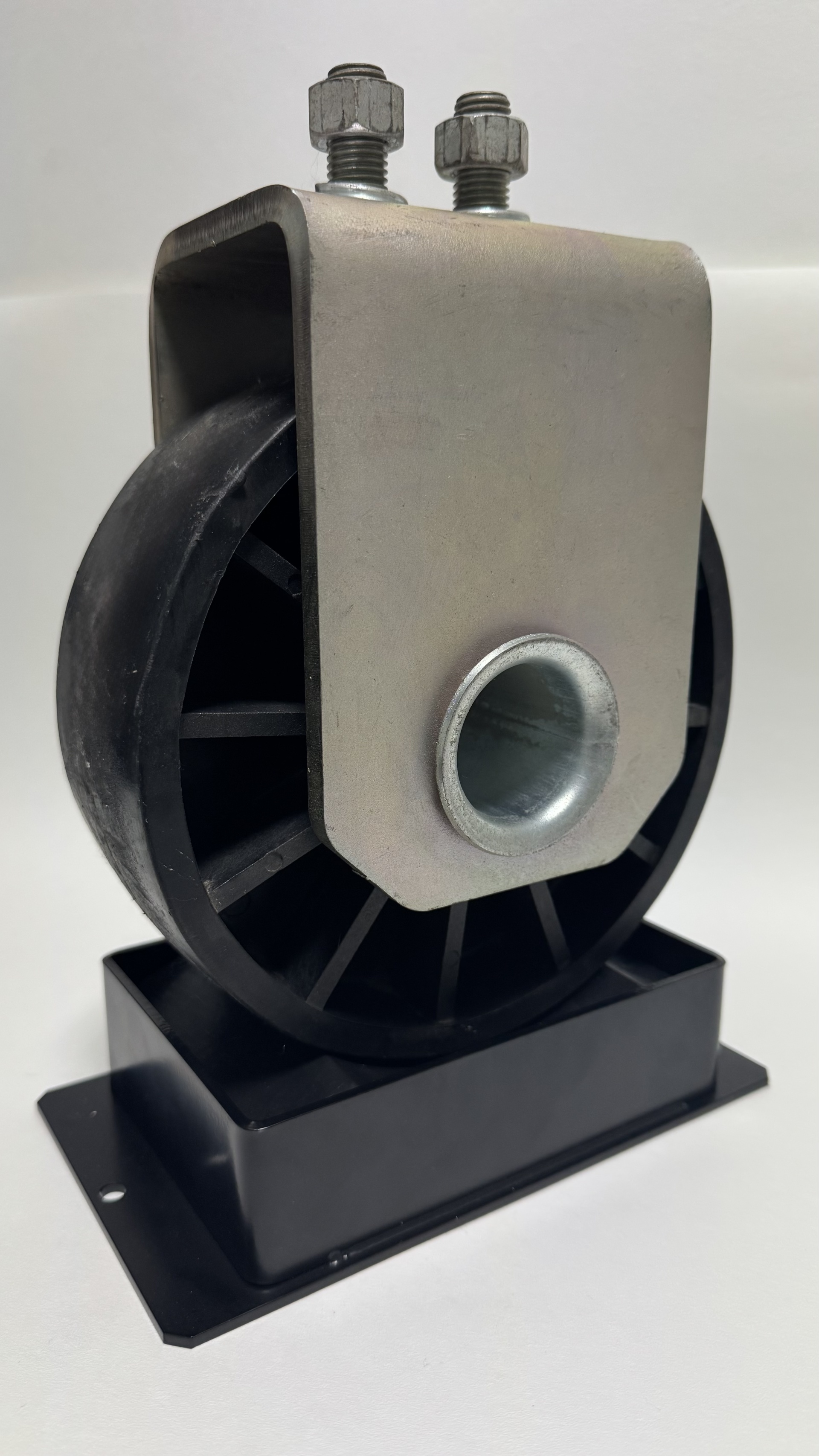 Конструктивно форма виброопоры для трансформаторов имеет широкую плоскую установочную поверхность и подобранную выемку под ролик радиусом скругления под самые распространенные диаметры и ширину выкатных катков / роликов трансформаторов зарубежного и отечественного производства.
