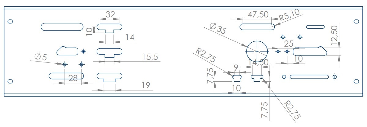 • Шаблон быстрой перенастройки для обработки 20 мм профиля