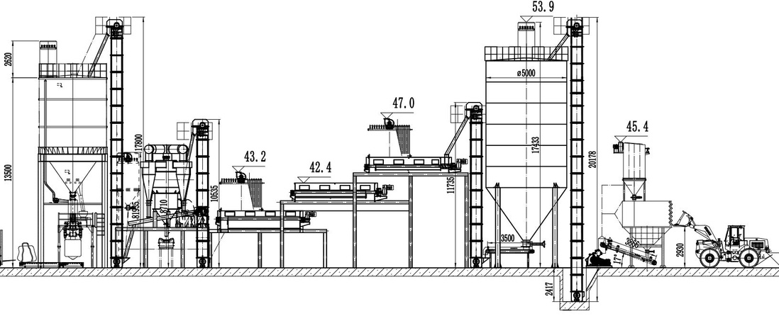 Размеры установки в собранном состоянии около 100*30*18 метров (не включает склад готовой продукции);