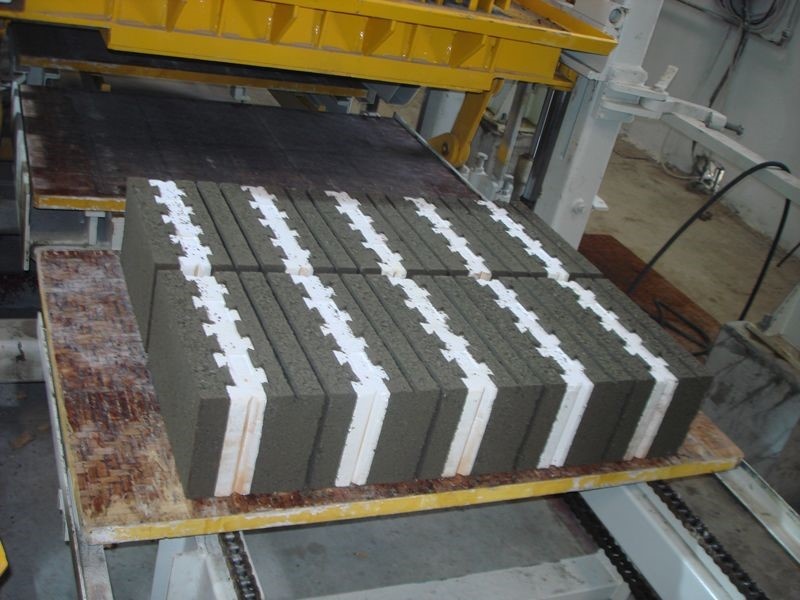 Специальная система автоматического подъема для производства тротуарной плитки высотой 60 мм с цветным слоем.