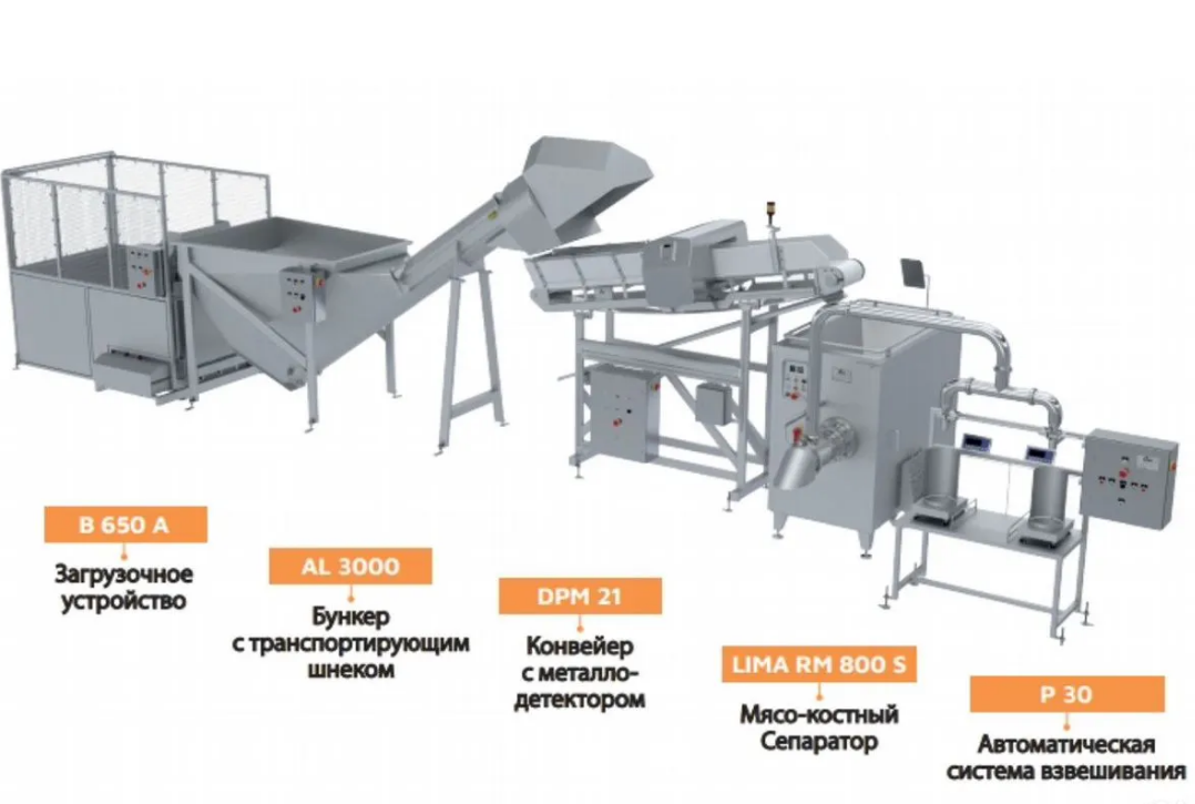 Система взвешивания Lima P30 подключается непосредственно к сепаратору/обвалочной машине без использования какой-либо дополнительной насосной системы.