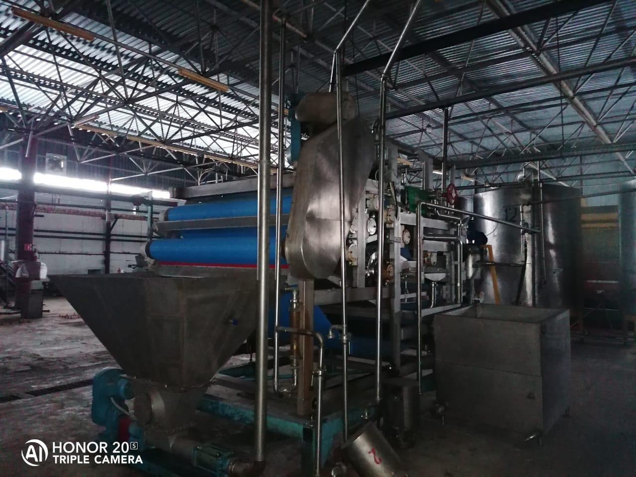Пресс используется в производстве фруктовых соков для непрерывного отделения сока от дробленных фруктов.
