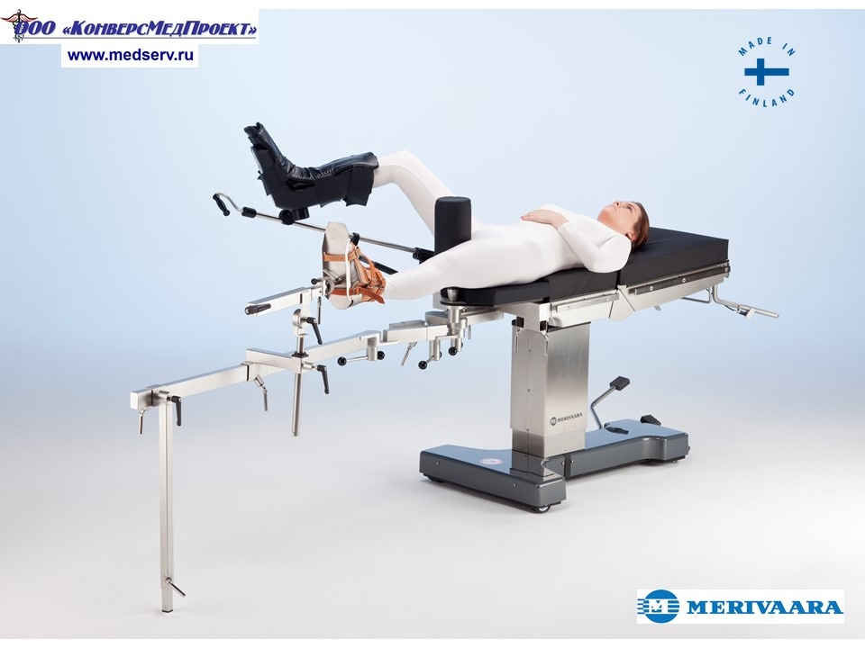 - практический полный спектр принадлежностей к операционным стола Merivaara позволяет использовать стол для операций широкого профиля