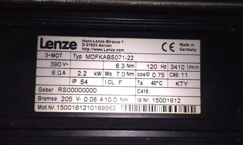 Сервомотор lenze TYPmdfkabs071-22 (Германия) Новый