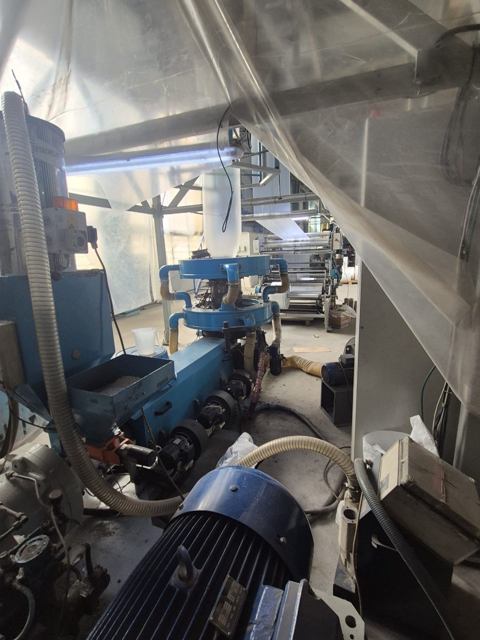 Ширина рукава - 1200 мм. Толщина 20-200 мкм. Производительность - 50 кг/час. Отработала 90.000 часов. Материалы: HDPE, LDPE, LLDPE. Габариты линии: 7.0х2.6х5.5м.