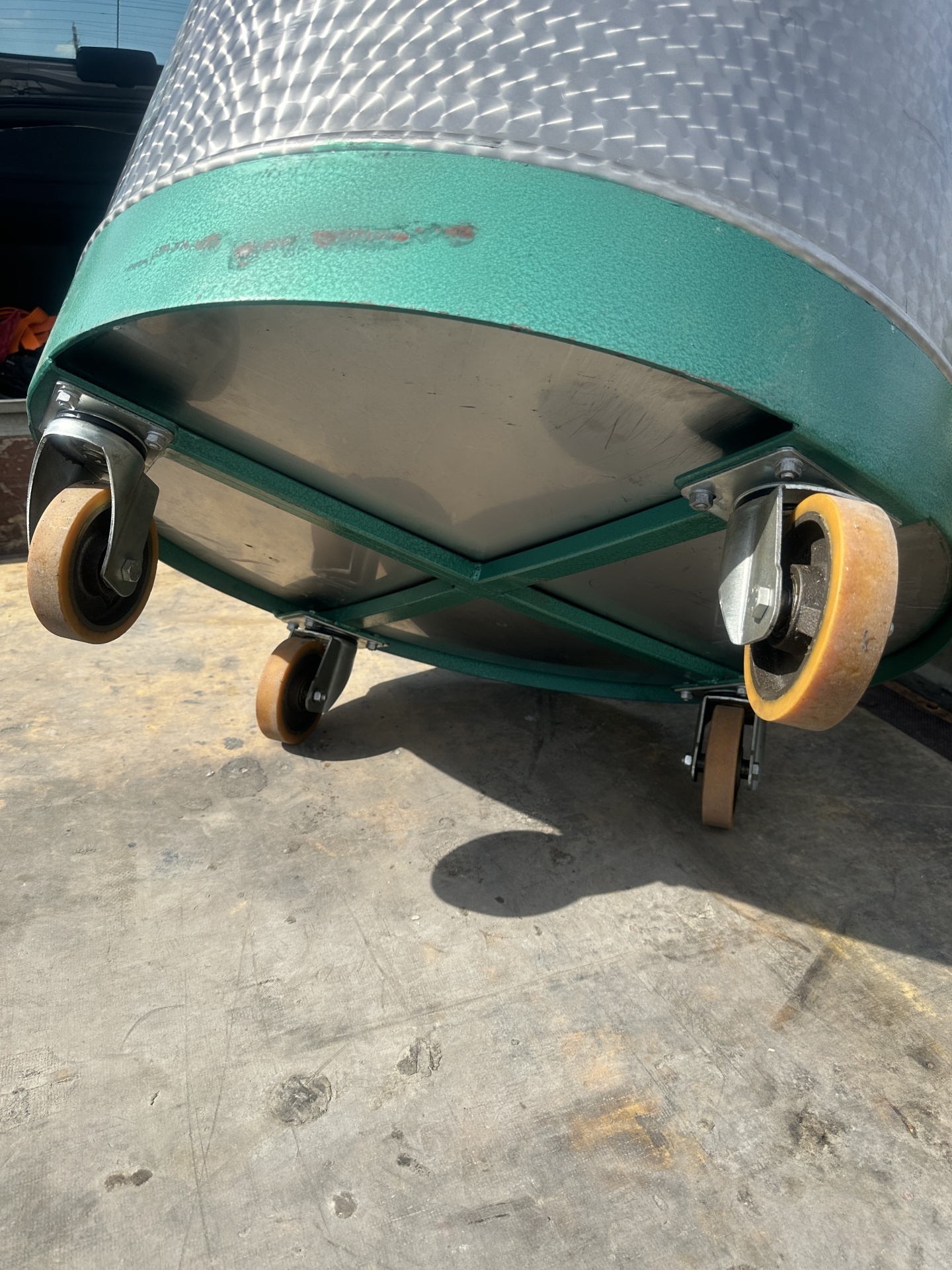 НОВАЯ. Емкость изготовлена из пищевой нержавеющей стали. Основание на 4 полиуретановых колесах диаметром 125мм. В комплекте съемная крышка. Объем 0.6 м3. Внутренний диаметр 790 мм, глубина 1270 мм, высота 1530 мм, наружный диаметр с ручками 1050 мм. Производство Италия. В наличии 6 штук. Цена за единицу.