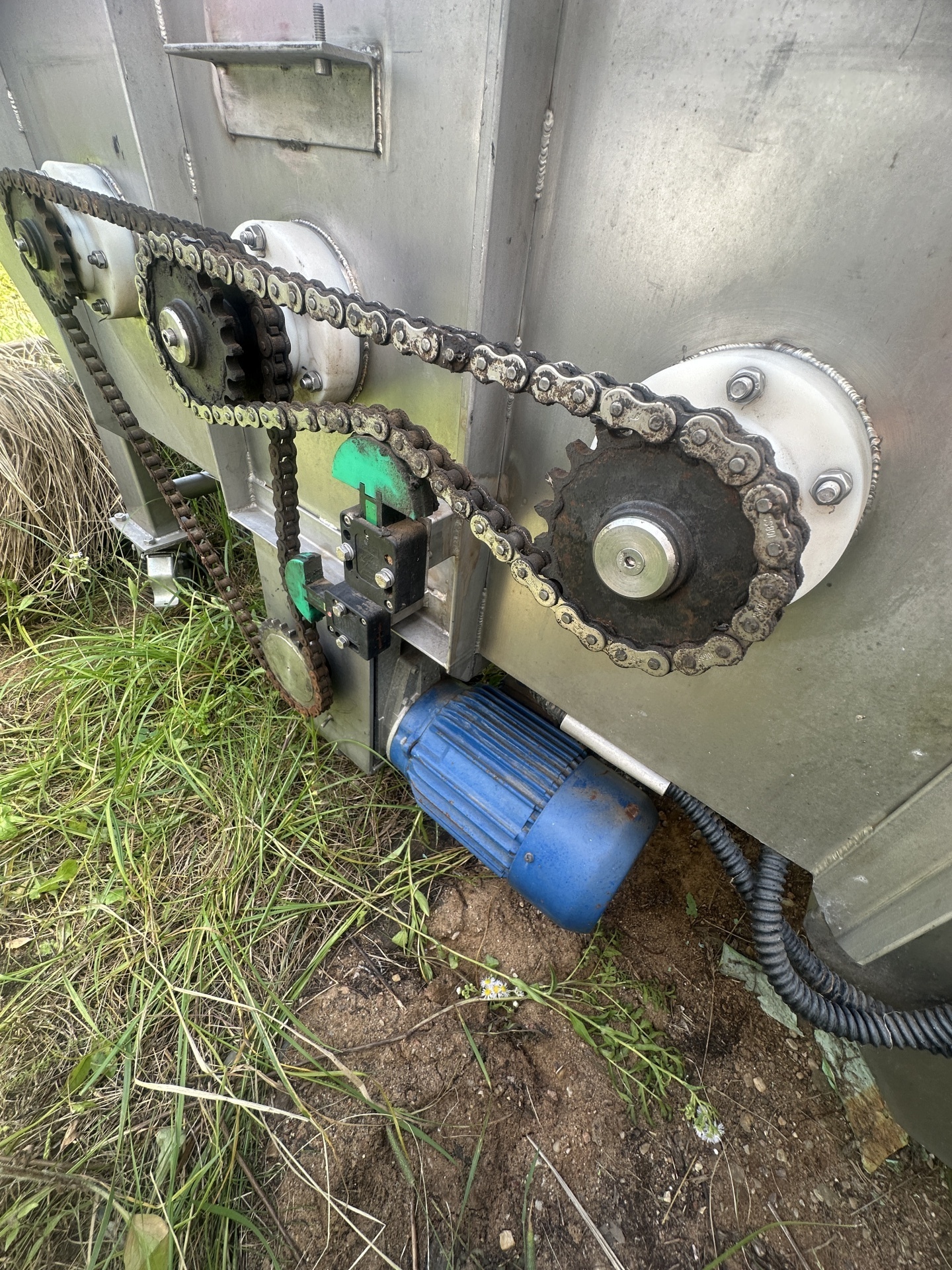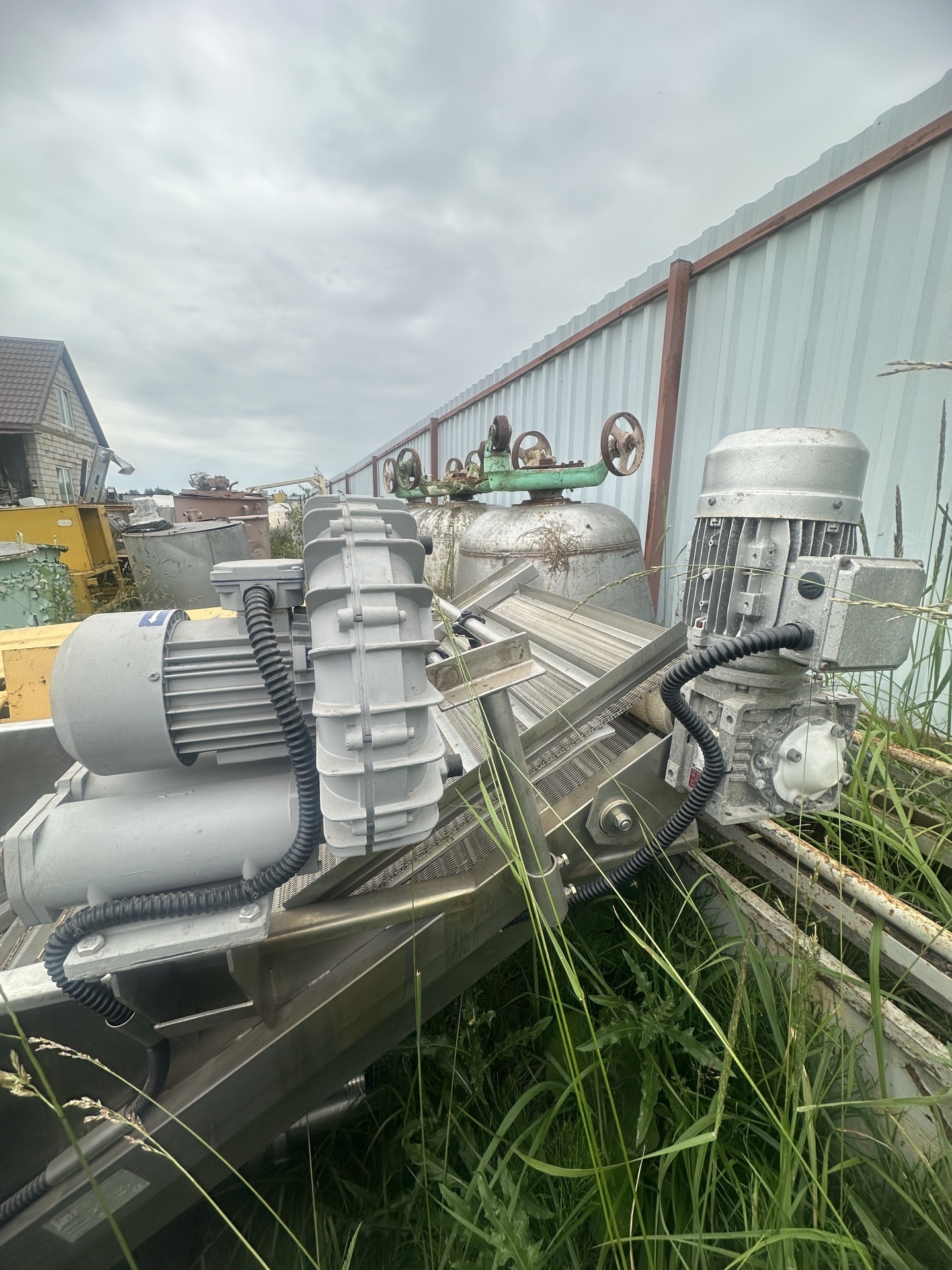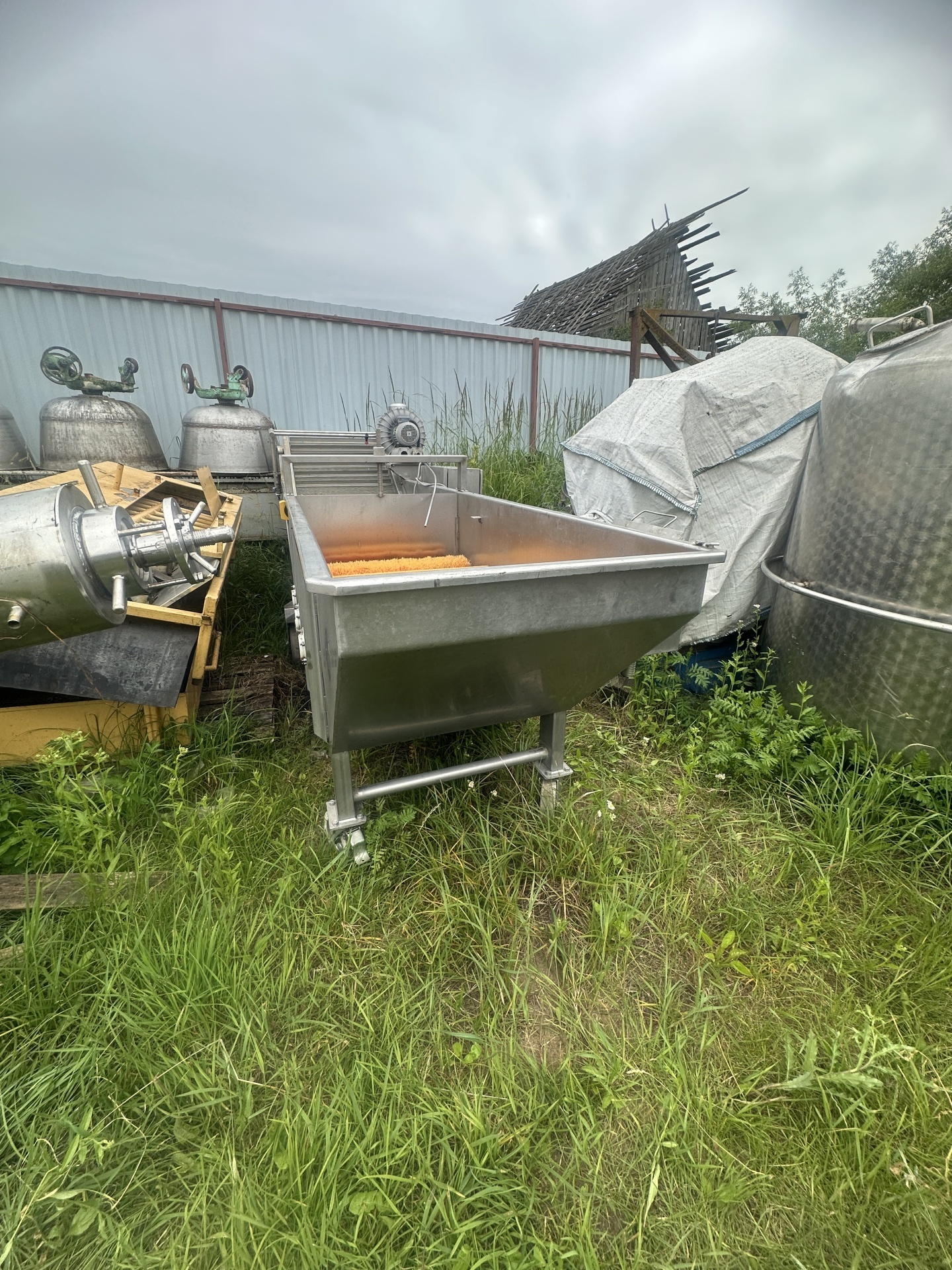 Моечная машина полностью выполнена из пищевой нержавеющей стали и состоит из моечной ванны с вращающимися наборными щётками(3шт), подьемного шибера и наклонного сетчатого скребкового транспортера выгрузки. Время нахождения продукта в моечной ванне регулируется высотой подьема шибера и зависит от степени загрязнения овощей или фруктов. Предназначена для мойки различных овощей и фруктов. Установлены вращающиеся щетки для мытья продукции и воздуходувка для удаления воздухом поверхностной влаги с продукта. Габариты длина 3550, ширина 1100, высота 1700. Ширина ванны 770, глубина 600