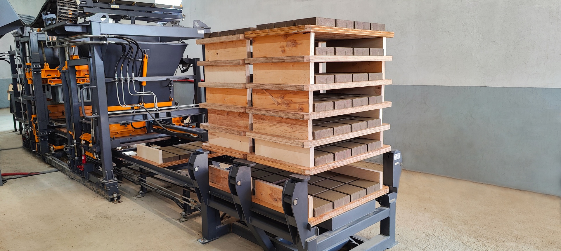 Специальная конструкция и высокая точность изготовления матриц обеспечивают высокую геометрическую точность и красивый внешний вид изделий, получаемых на формующем блоке «МАКСИМАЛ». Благодаря этому, при возведении зданий из стеновых камней, удается ускорить процесс кладки при одновременной экономии строительного раствора и получать ровные стены с тонкими швами, а при использовании в строительстве других получаемых изделий – красиво благоустраивать территорию. В процессе работы блока «МАКСИМАЛ» изделия выпрессовываются из формообразующей оснастки вибропресса на специальные поддоны. Поддоны предназначены для вылеживания отформованных сырых изделий в процессе их естественного твердения или пропаривания.