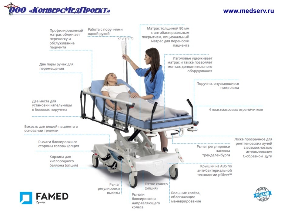 - ПРОЧНЫЕ – ИНТУИТИВНОЕ УПРАВЛЕНИЕ – ДЛЯ ТРАНСПОРТИРОВКИ И ОБСЛЕДОВАНИЯ ПАЦИЕНТА – АНТИБАКТЕРИАЛЬНОЕ ПОКРЫТИЕ –