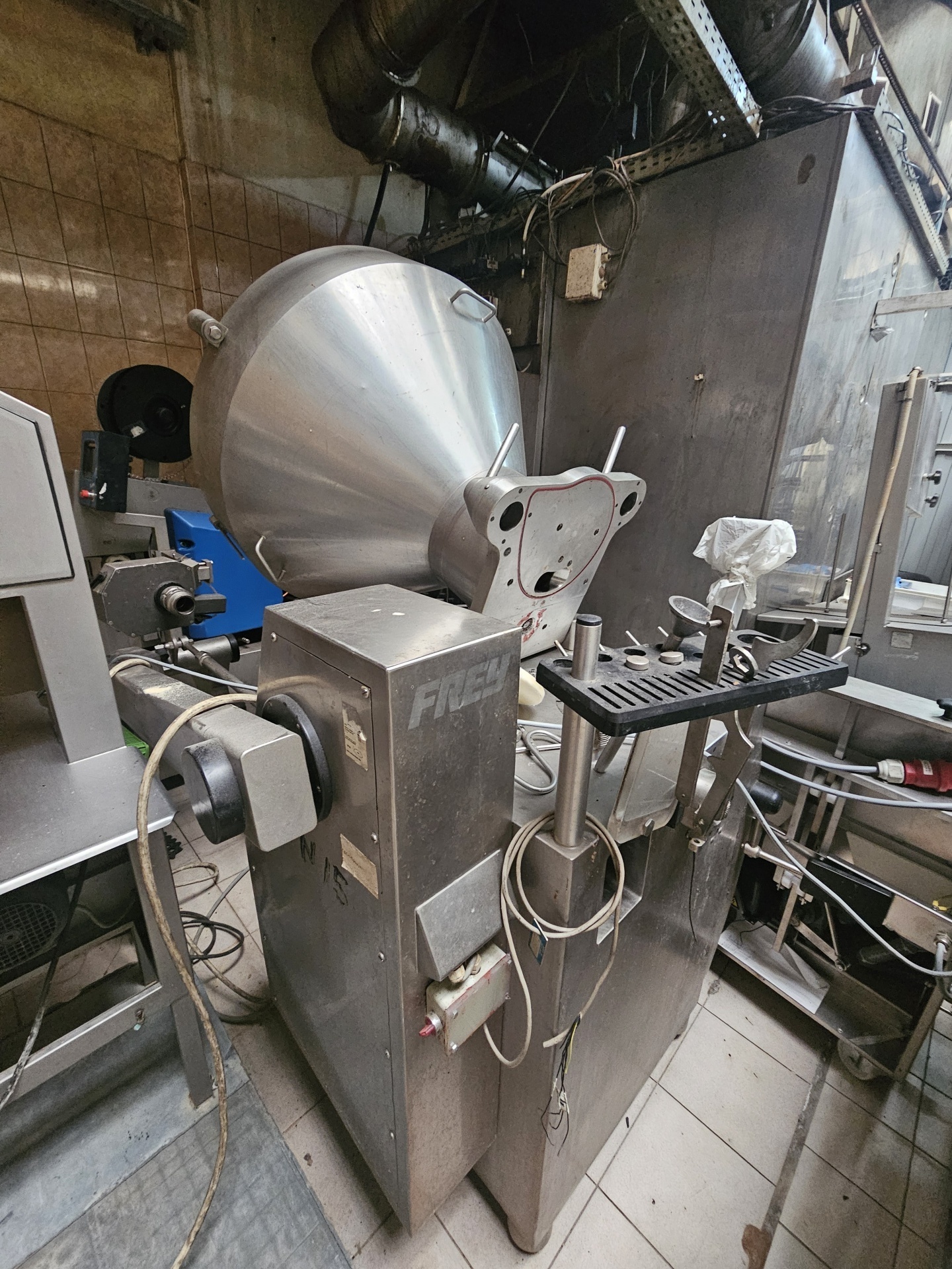 Продается Шприц роторный для производства колбасных изделий Frey konti T-260 2005 года выпуска. В полной комплектации с подъемником и перекрутчиком. В очень хорошем состоянии, все полностью обслужено (насос, уплотнения, перекрутчик, все механические узлы), без выработки в лопатках и роторе. В комплекте также большое количество различных цевок. Цена с указана с НДС. Возможен торг!!! Также имеется другое оборудование для мясопереработки.