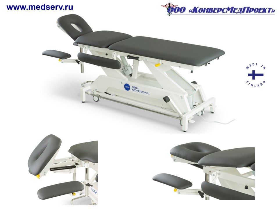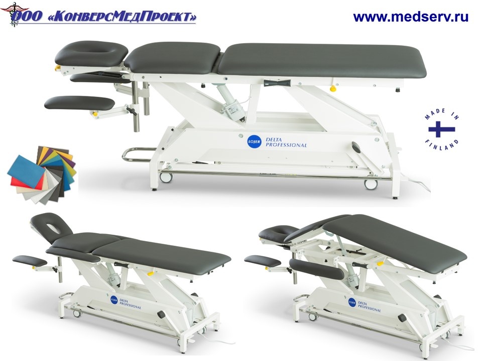 ООО «КонверсМедПроект» на правах официального дистрибьютора представляет классический многофункциональный надежный массажный стол Delta Professional DP5(https://www.medserv.ru/catalog/massazhnye-stoly/123268.html ) производства Lojer, Финляндия.