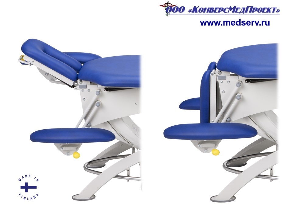 Электропривод изменения высоты ложа при помощи ножной педали позволяет регулировать стол, не отвлекаясь от пациента. Особенно удобна для данных целей овальная педаль в основании стола (опция), которая дает возможность производить регулировку, находясь с любой стороны от стола.