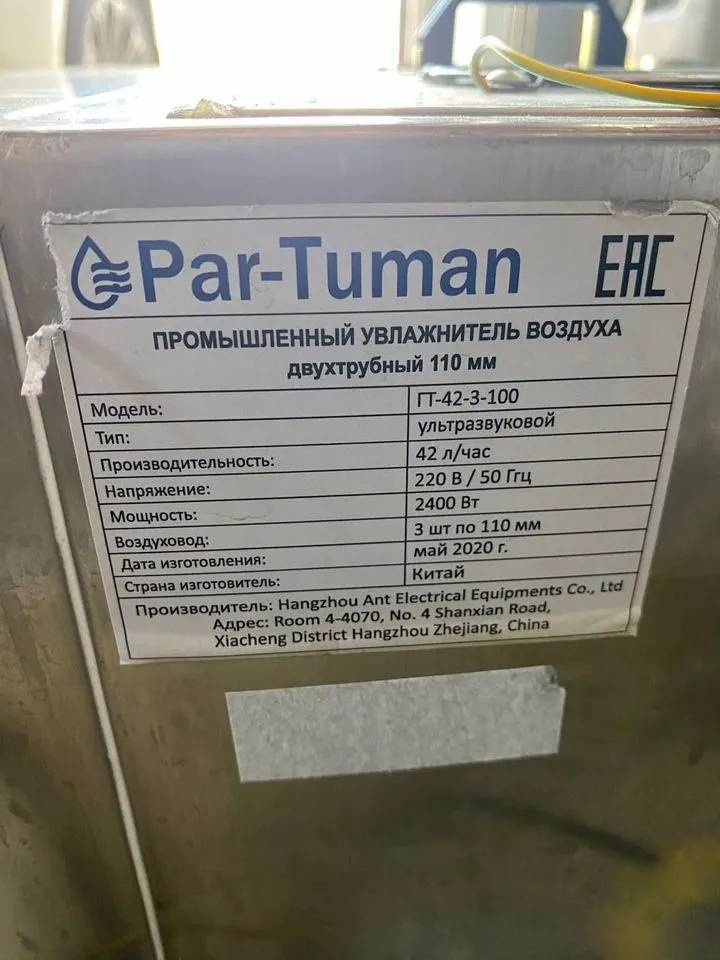 В связи с закрытием производства продаётся промышленный увлажнитель воздуха Par-Tuman, модель ГТ-42-3-100.