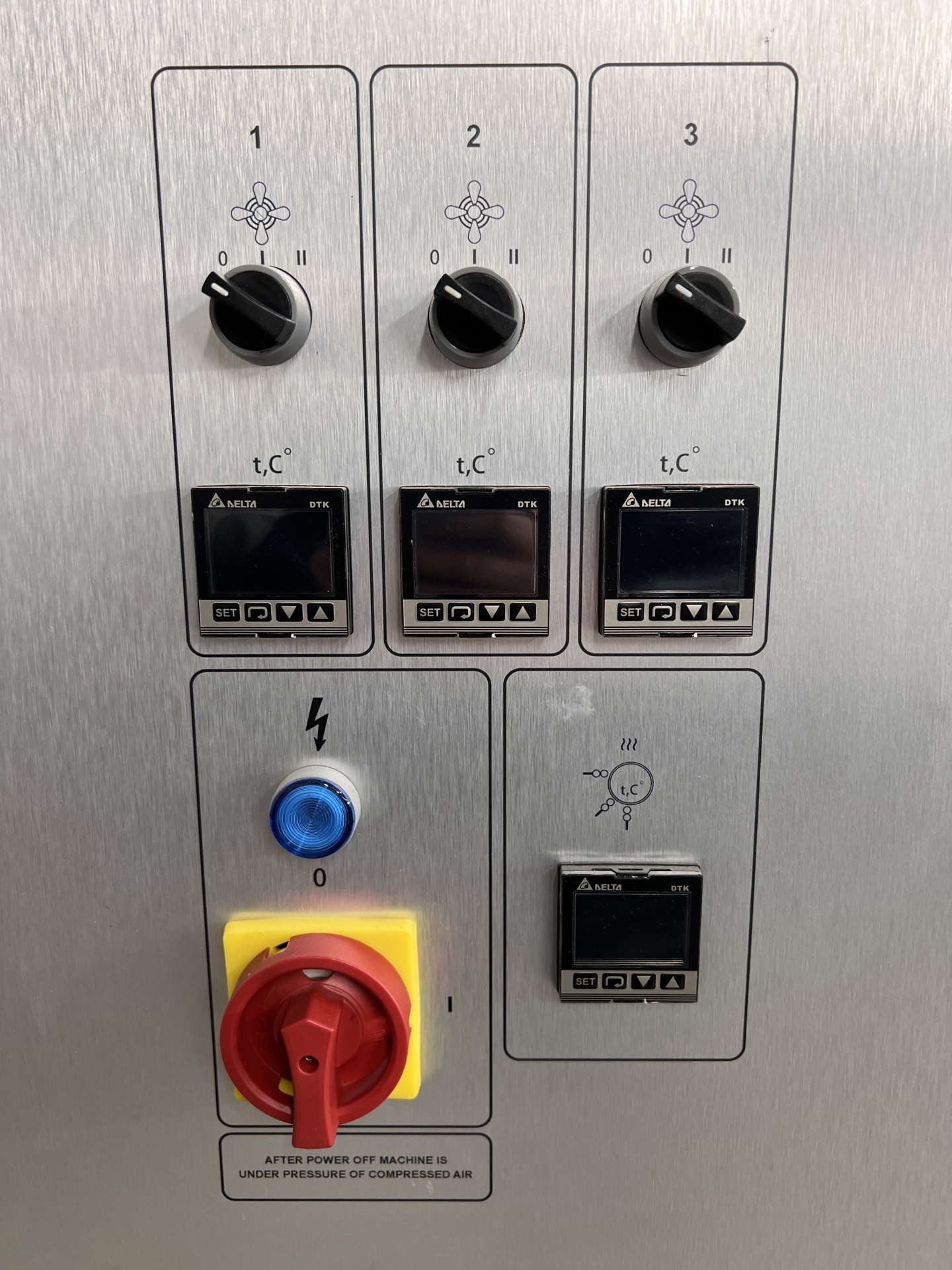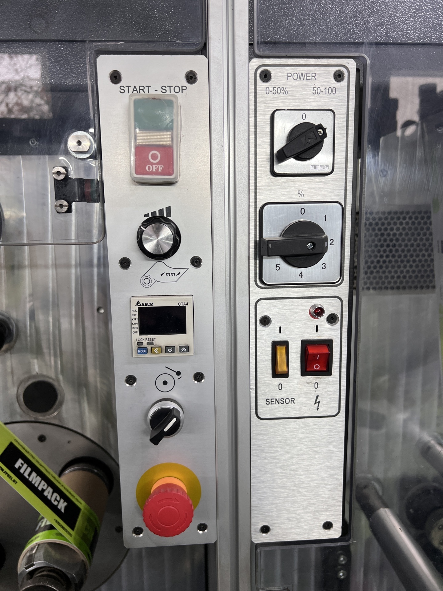 Помимо трех секций печати, машина оснащена двумя дополнительными секциями: нанесения грунтовки (праймера) на ленту перед непосредственным процессом печати для лучшей адгезии краски с лентой и нанесения защитного лака после процесса печати для уменьшения влияния липкого слоя при использовании скотч ленты по назначению. Машины оснащена также системой резки при помощи бритвенных ножей напечатанного материала перед его намоткой (в стандартном комплекте используется 2 ножа). Машина оснащена встроенной системой пожаротушения!