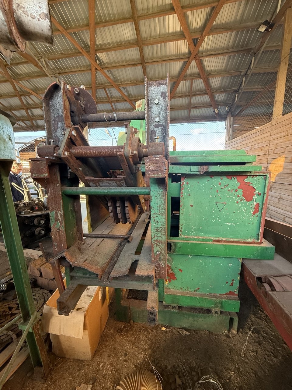 Дополнительно установлен захват для полубруса с приводом на выходе и прижим на входе.