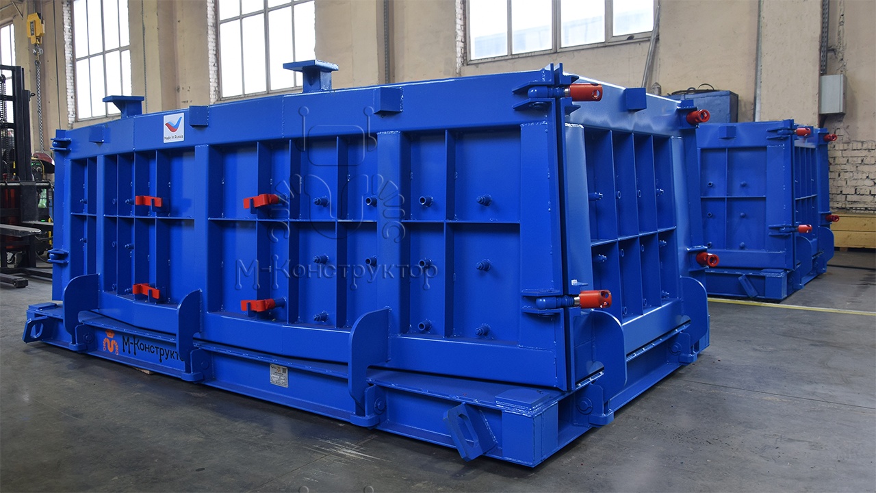 "М-Конструктор" изготавливает универсальные металлоформы для колодцев ККС. Так как верхняя и нижняя части железобетонного колодца одинаковы и различаются только наличием в верхней части отверстия для люка, их можно изготавливать в одной форме, используя для изготовления верхней детали съемный пустотообразователь для люкового отверстия. Сердечник металлоформы ККС приварен к поддону (при желании можно заказать несколько поддонов с сердечником и одну обечайку, тем самым ускорив процесс производства и сократив расходы на оборудование).