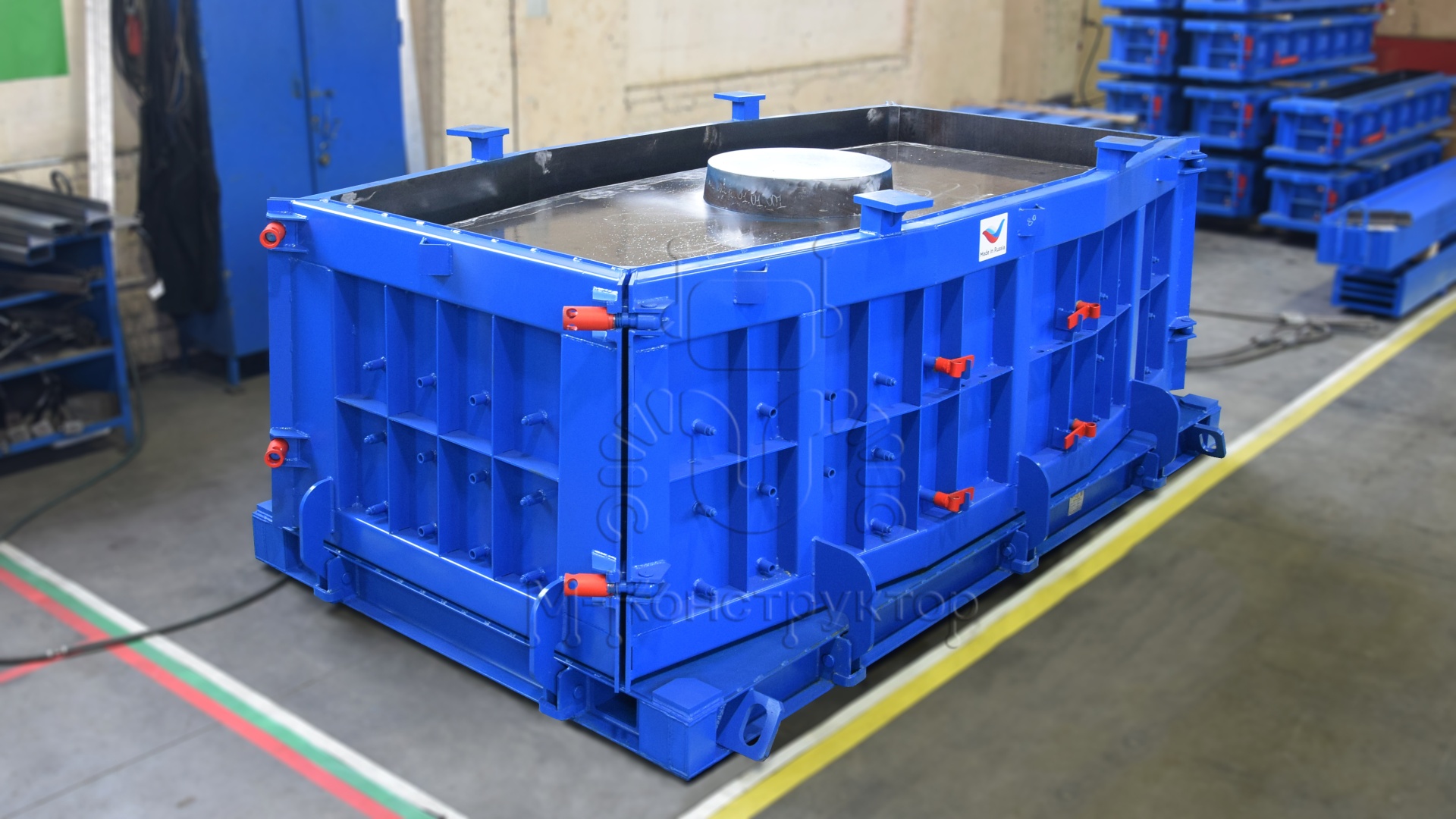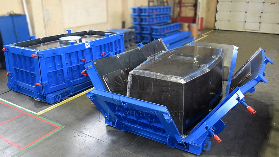 Распалубка производится не методом откидывания бортов, а посредством разъемов в двух диагонально расположенных углах, что ускоряет процесс изготовления и обеспечивает целостность изделий.