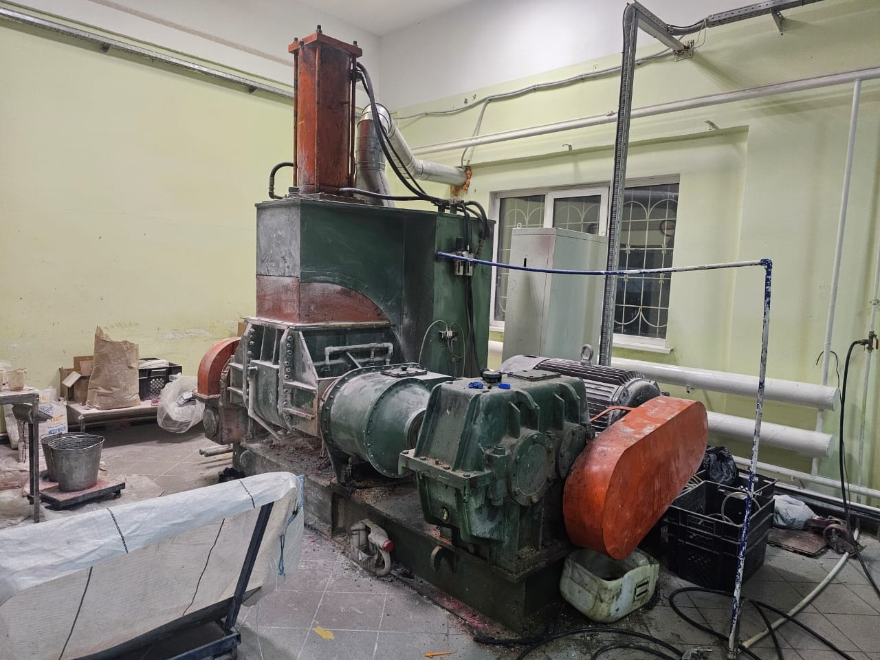 Резиносмеситель 90 литров для каучука. В рабочем состоянии подключен . Можно проверить в работе. К нему подключается вода для охлаждения и сжатый воздух.