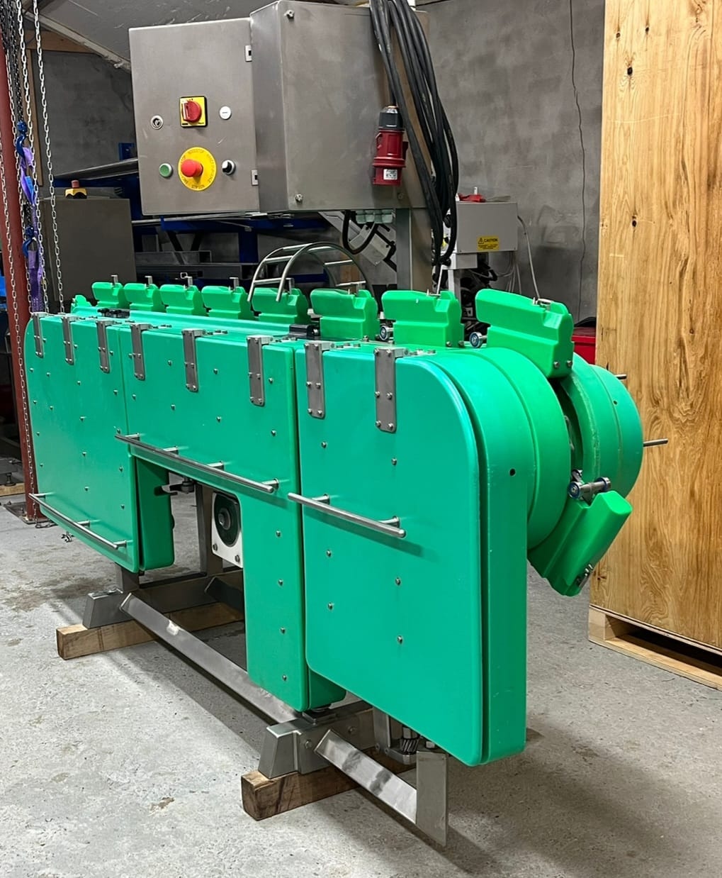 Филетировочная машина Meyn BC40 производит филе грудки высокого качества с отличным выходом. Целое филе или половинки филе с кожей или без кожи, как с вырезкой, могут производиться с максимальной производительностью 2400 продуктов в час. Производимое филе требует минимальной обрезки, имеет отличный товарный вид и очень хорошо подходит для упаковки на лотках.