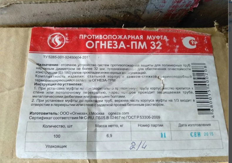 Муфта противопожарная эгида-пм-32, огнезапм-32 - Продам в Екатеринбурге