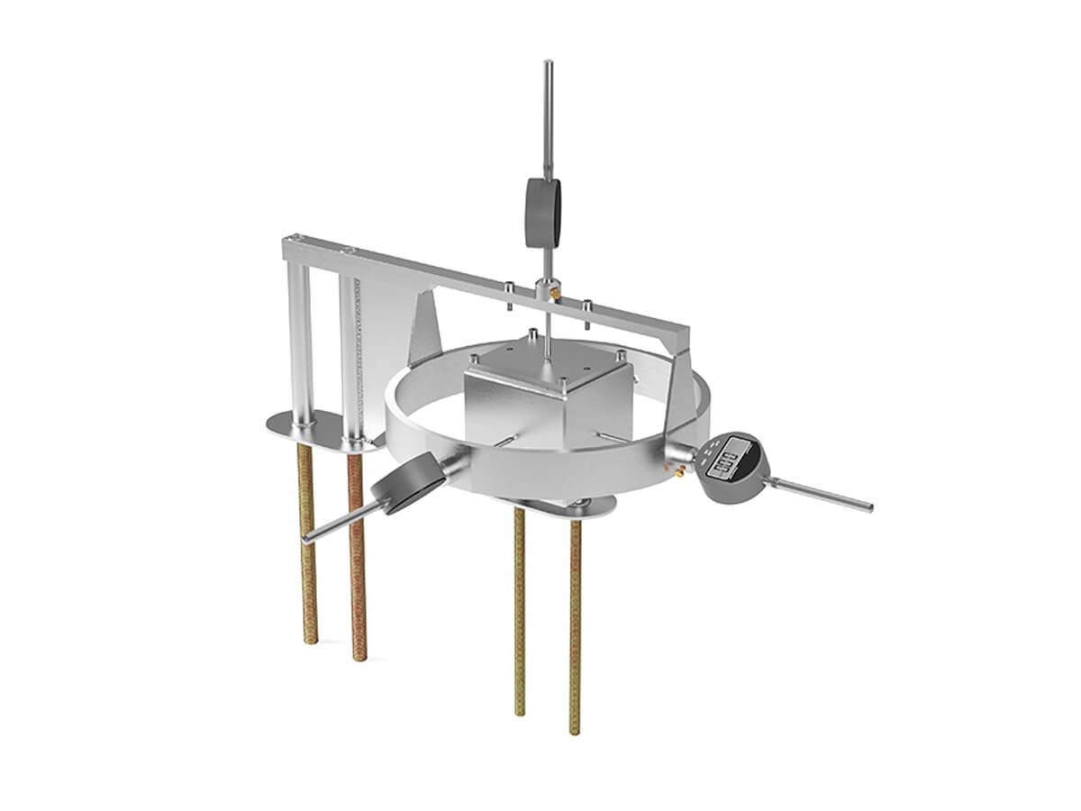 Трехосевой щелемер (трещиномер) ±50 мм механический представляет собой металлическую конструкцию, предназначенную для контроля раскрытия трещин или деформационных швов по трем направлениям с помощью ручных индикаторов часового типа.