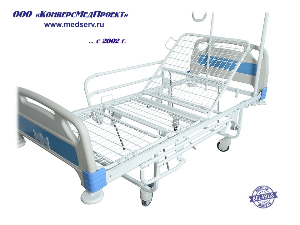 ООО "КонверсМедПроект" представляет кровать c 3-мя регулируемыми секциями для комфортного безопасного расположения пациентов в палатах ЛПУ широкого профиляИЯУБ 16.19 «Здоровье-3»(https://www.medserv.ru/catalog/Bolnichnye-Funktsionalnye-Krovati/184342.html ).