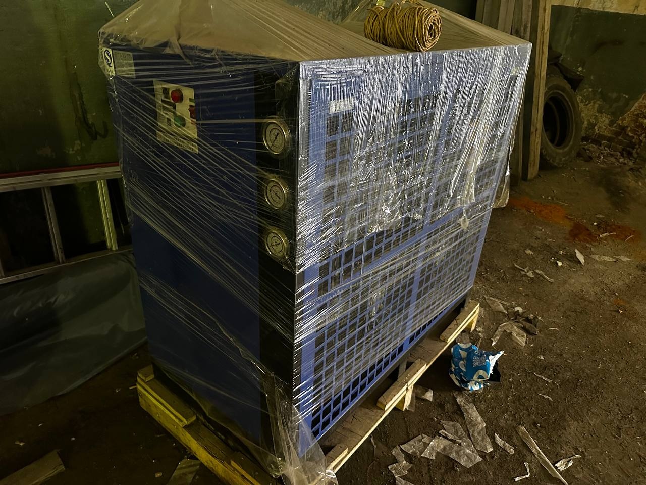 В комплект входит компрессор 75кВт, два осушителя, комплект трубопроводов и фильтров