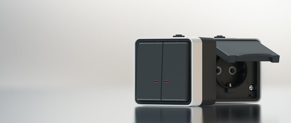 Розетка электрическая двухместная горизонтальная CADUCEUS ALING PROTECTA для открытой проводки, без шторок, с крышкой, 16А, 250В~