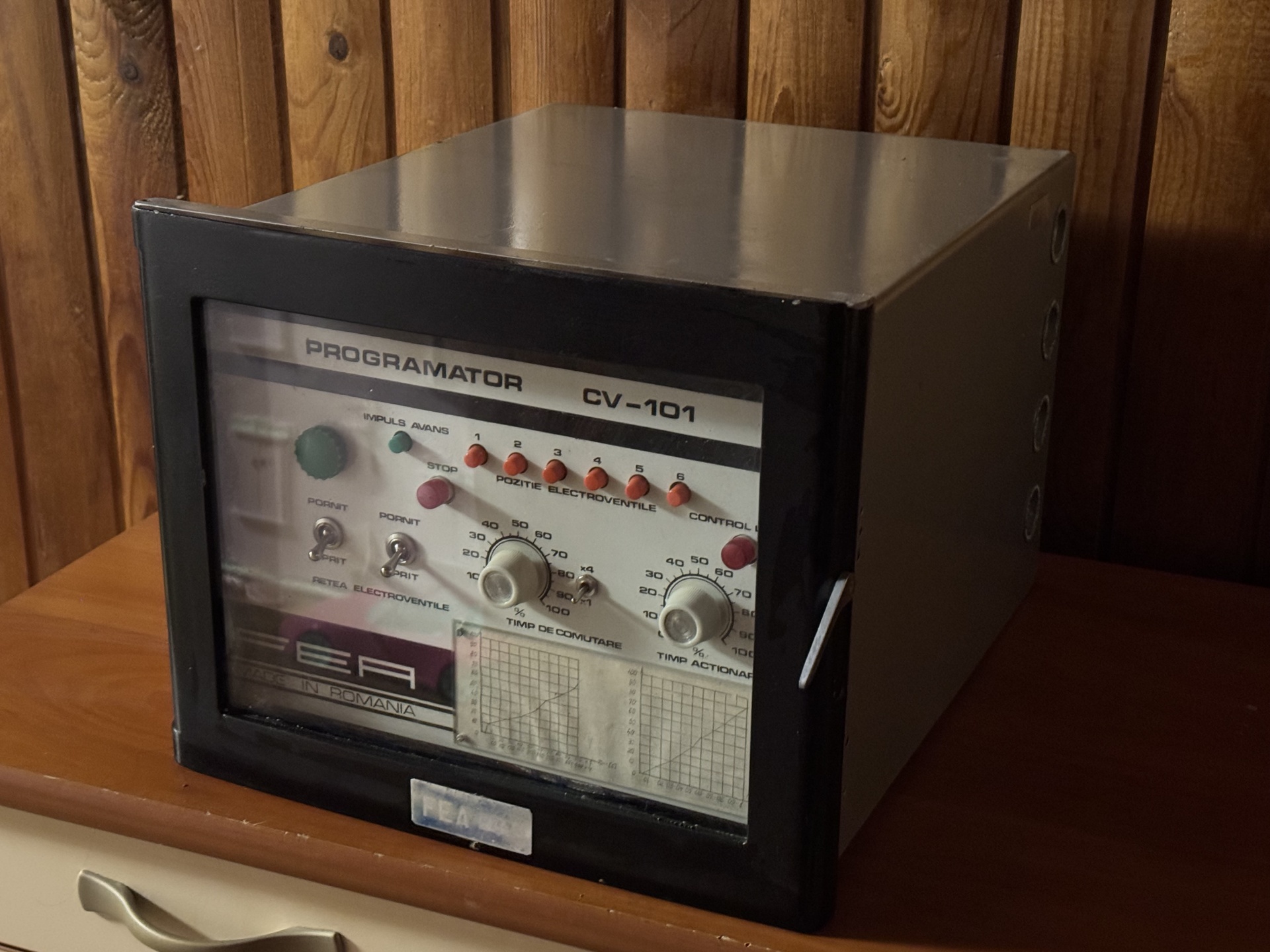 Продаётся оригинальный промышленный Programator CV-101 — аналоговый регулятор/программатор температуры производства Социалистической Республики Румыния (1980 г.). Это не современный гаджет, а аутентичный прибор из эпохи СЭВ, использовавшийся на заводах, в печах, сушилках и термокамерах для точного задания циклов нагрева/охлаждения.