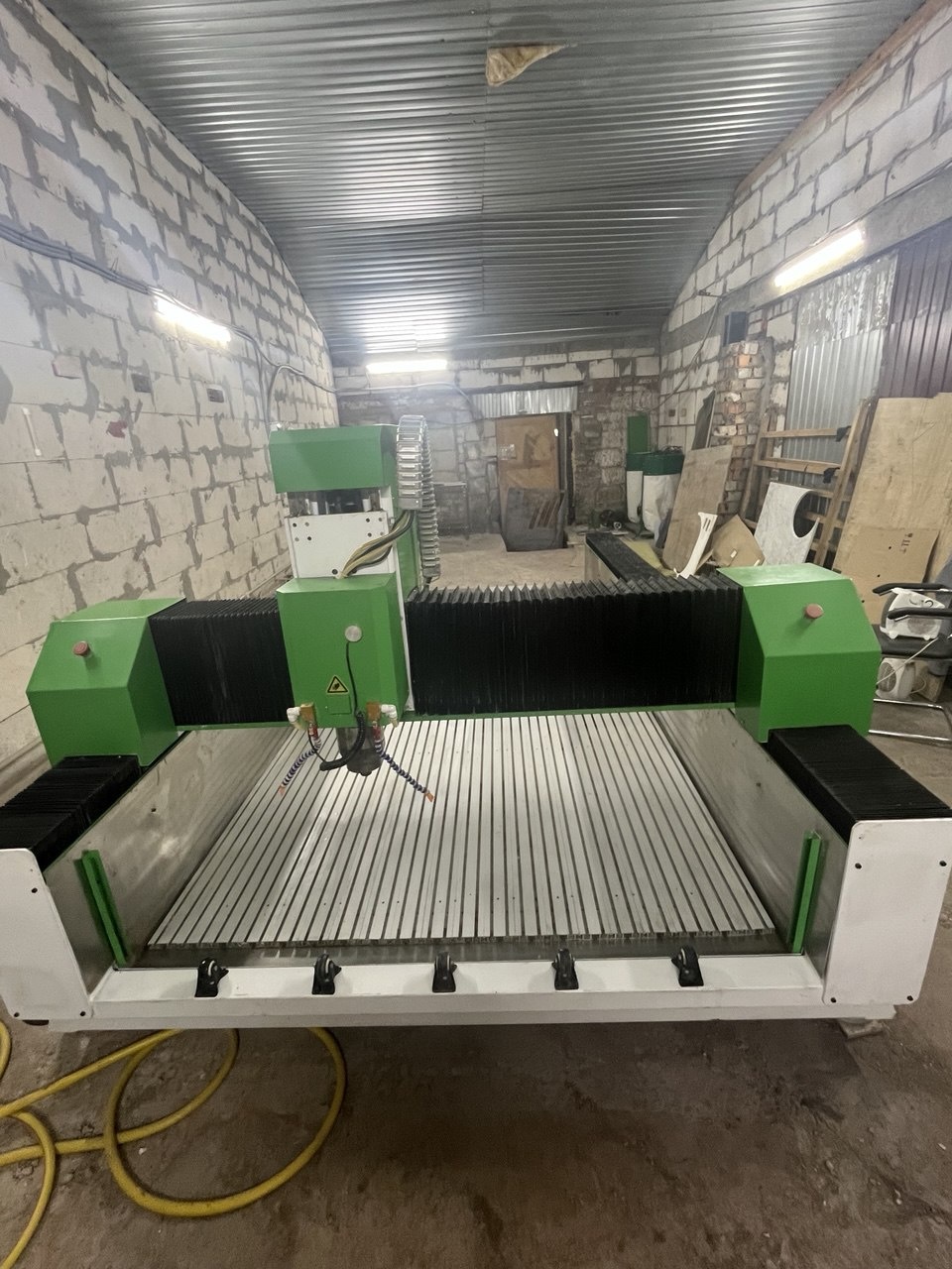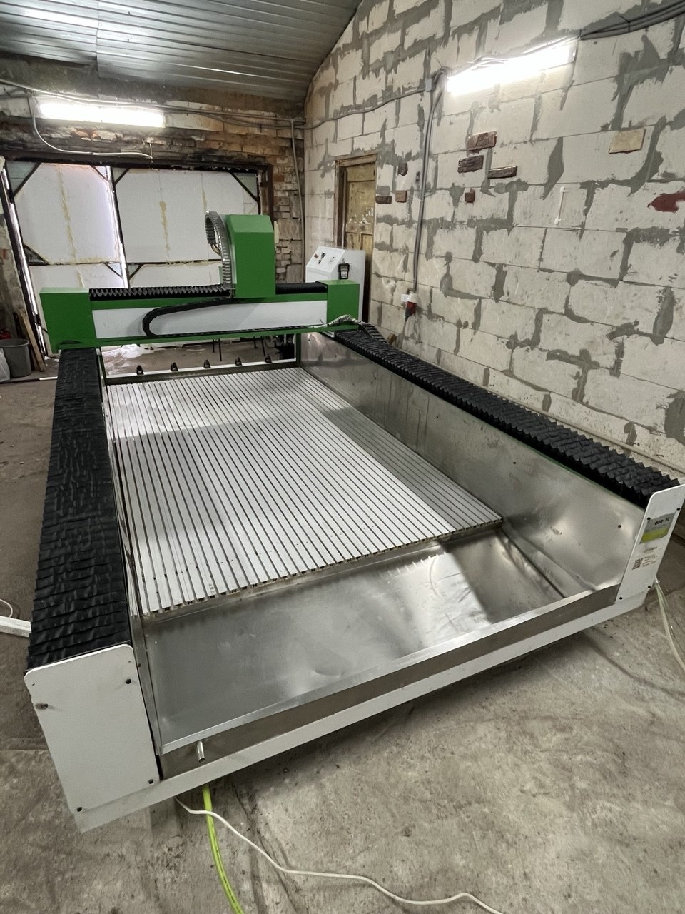 Фрезерной станок с ЧПУ WoodTec MA-1325, полный аналог StoneTec 1325 подходит для фрезеровки камня (с подачей воды), дерева, плитных материалов и мягких металлов. Дата выпуска станка 9 месяц 2021 год. Станок использовался 1 год, остальное время простаивал. Очень хорошее состояние. В комплекте система аспирации, поворотная ось, компрессоры для подачи воды и охлаждающей жидкости.
