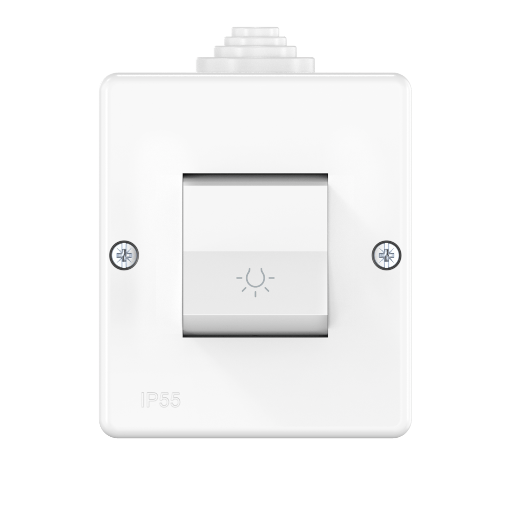 Выключатель одноклавишный кнопочный CADUCEUS ALING PROTECTA для открытой проводки, с символом «свет», 10АХ, 250В~