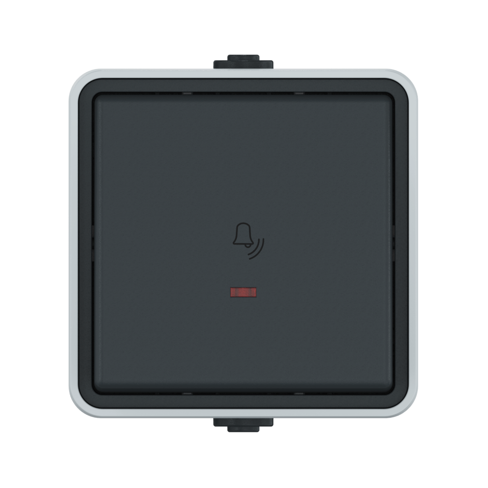 Выключатель одноклавишный кнопочный CADUCEUS ALING PROTECTA для открытой проводки, с символом «звонок», 10А, 250В~