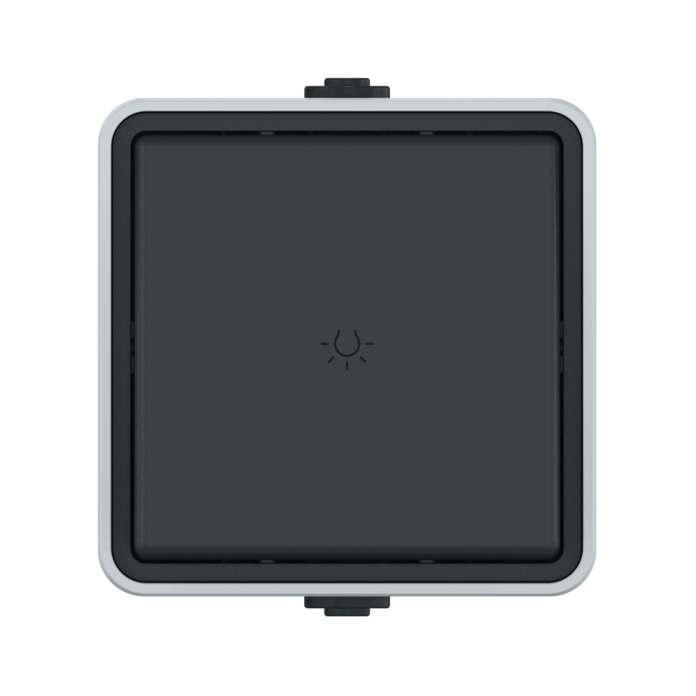 Выключатель одноклавишный кнопочный CADUCEUS ALING PROTECTA для открытой проводки, с символом «свет», с индикацией, 10АХ, 250В~