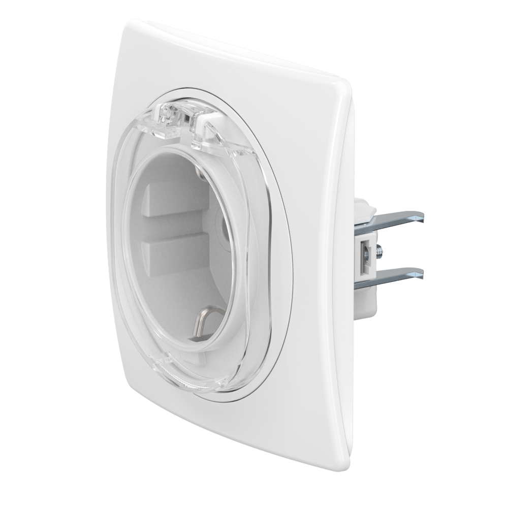 Встраиваемая розетка CADUCEUS ALING PRESTIGE с заземлением, без шторок, с крышкой, с пластиковым основанием, 16А, 250В~