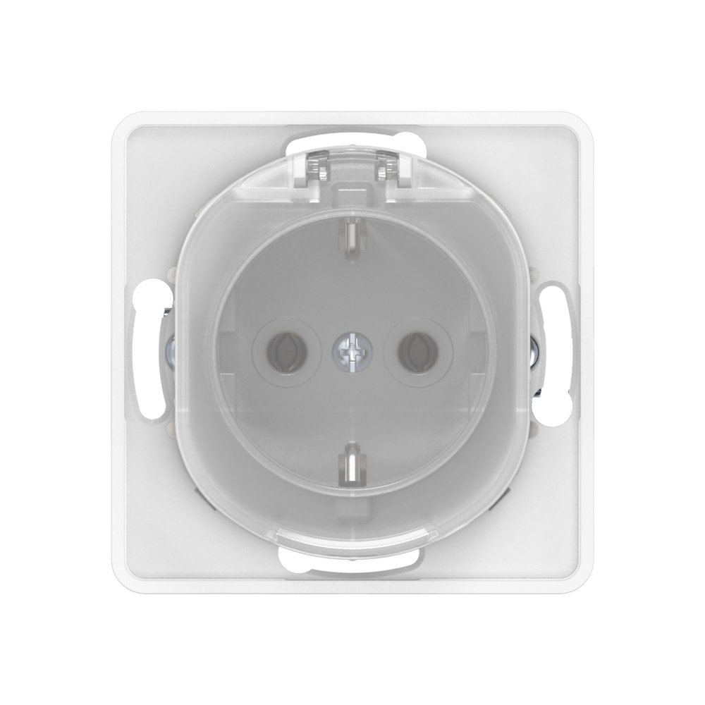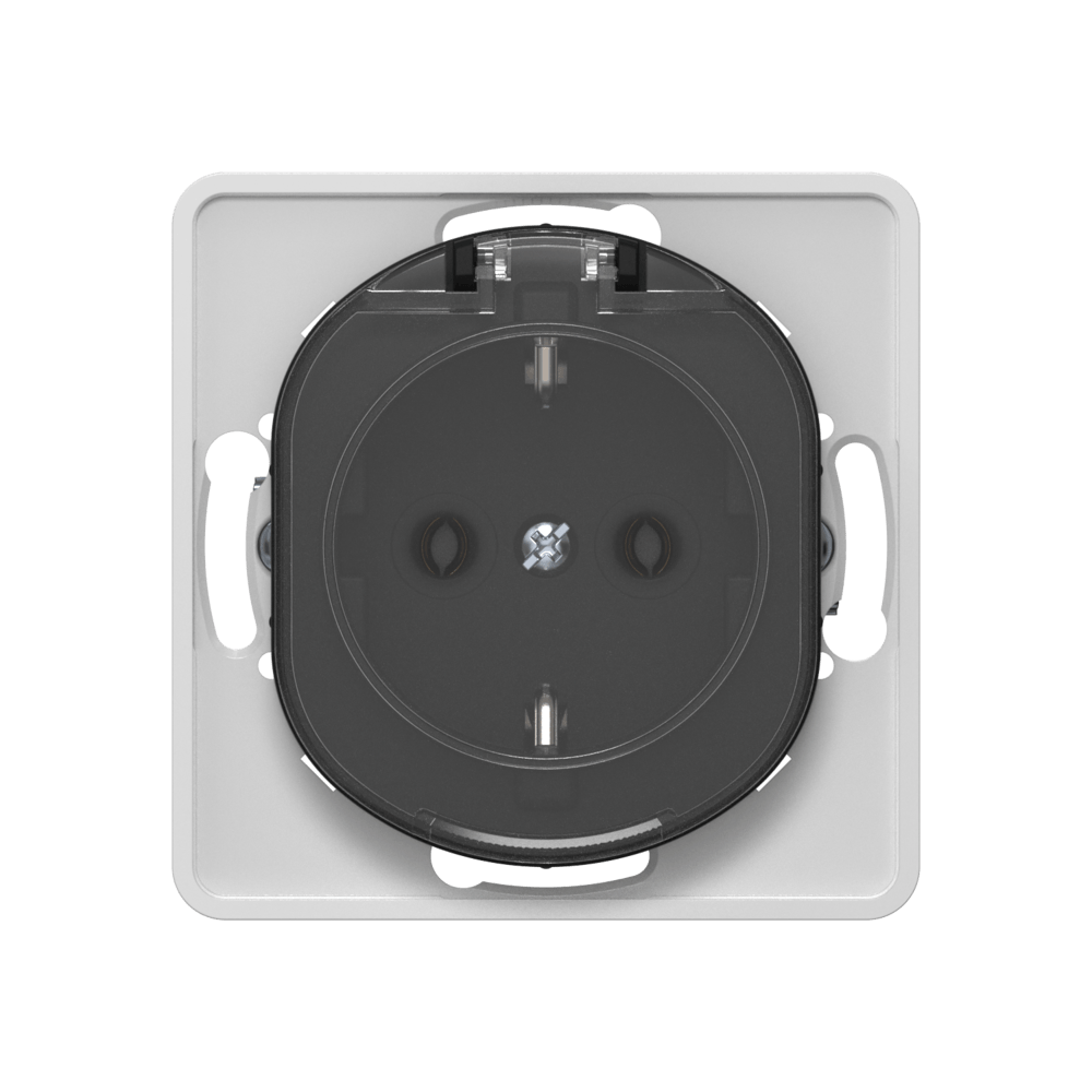 Механизм розетки скрытой установки CADUCEUS ALING PRESTIGE с заземлением, без шторок, с крышкой с пластиковым основанием, 16А, 250В~