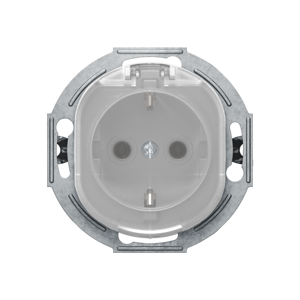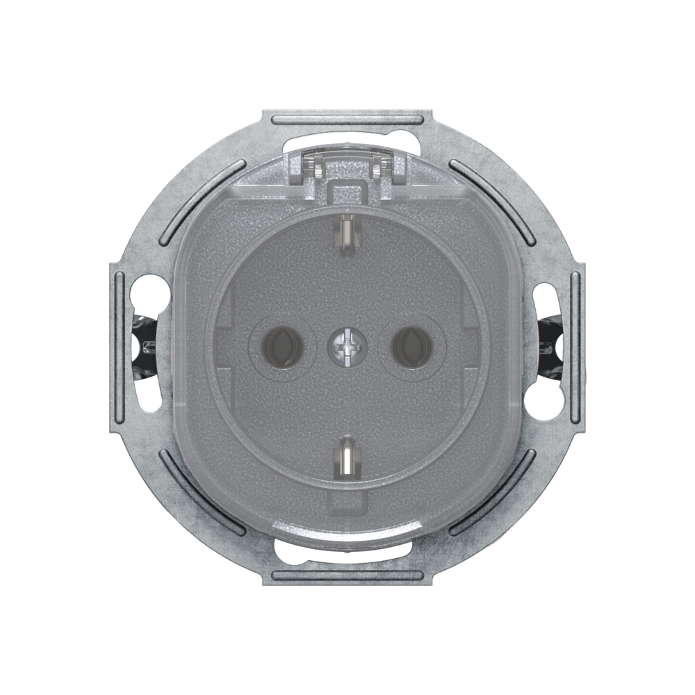 Механизм розетки скрытой установки CADUCEUS ALING PRESTIGE с заземлением, без шторок, с крышкой с пластиковым основанием, 16А, 250В~