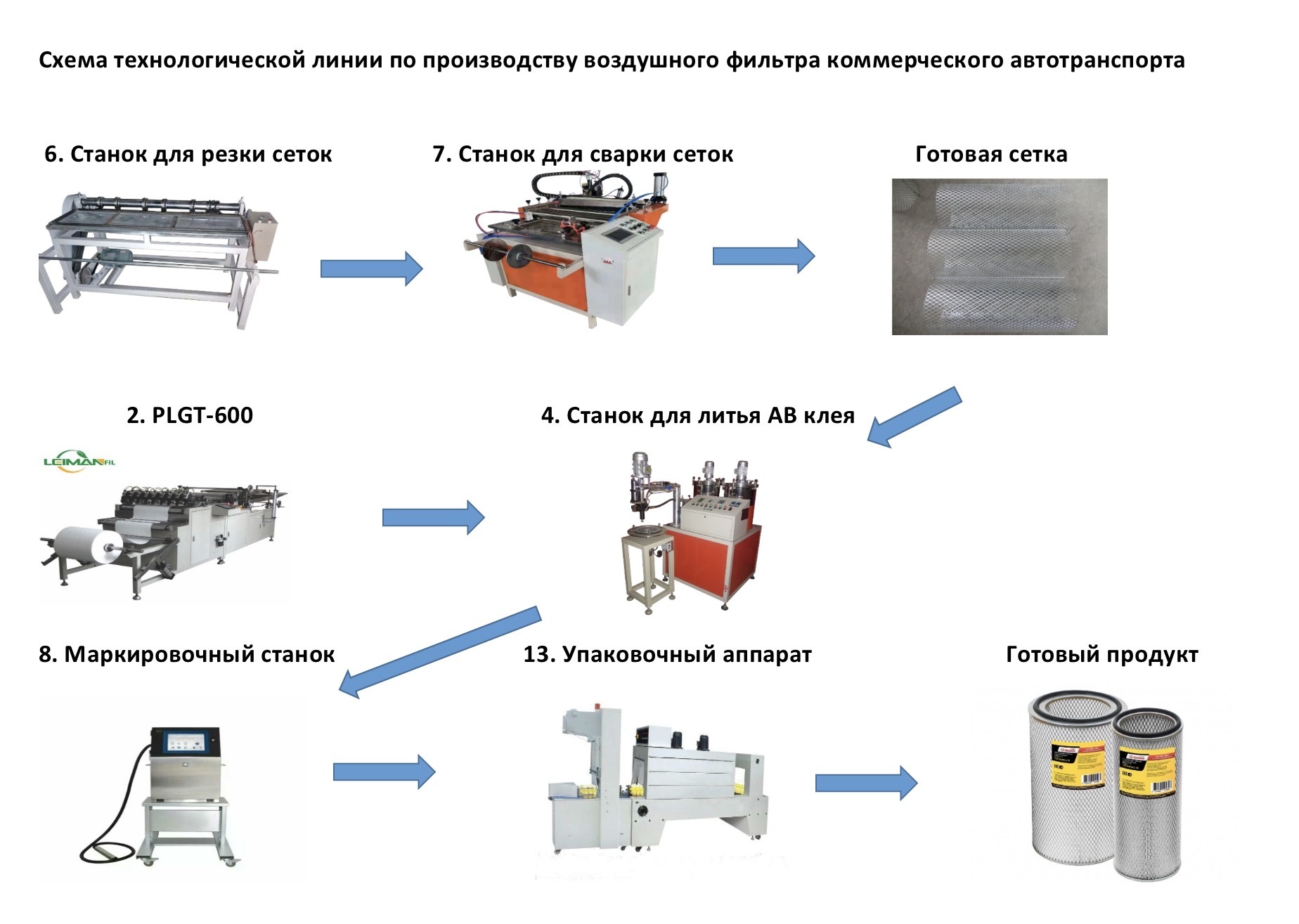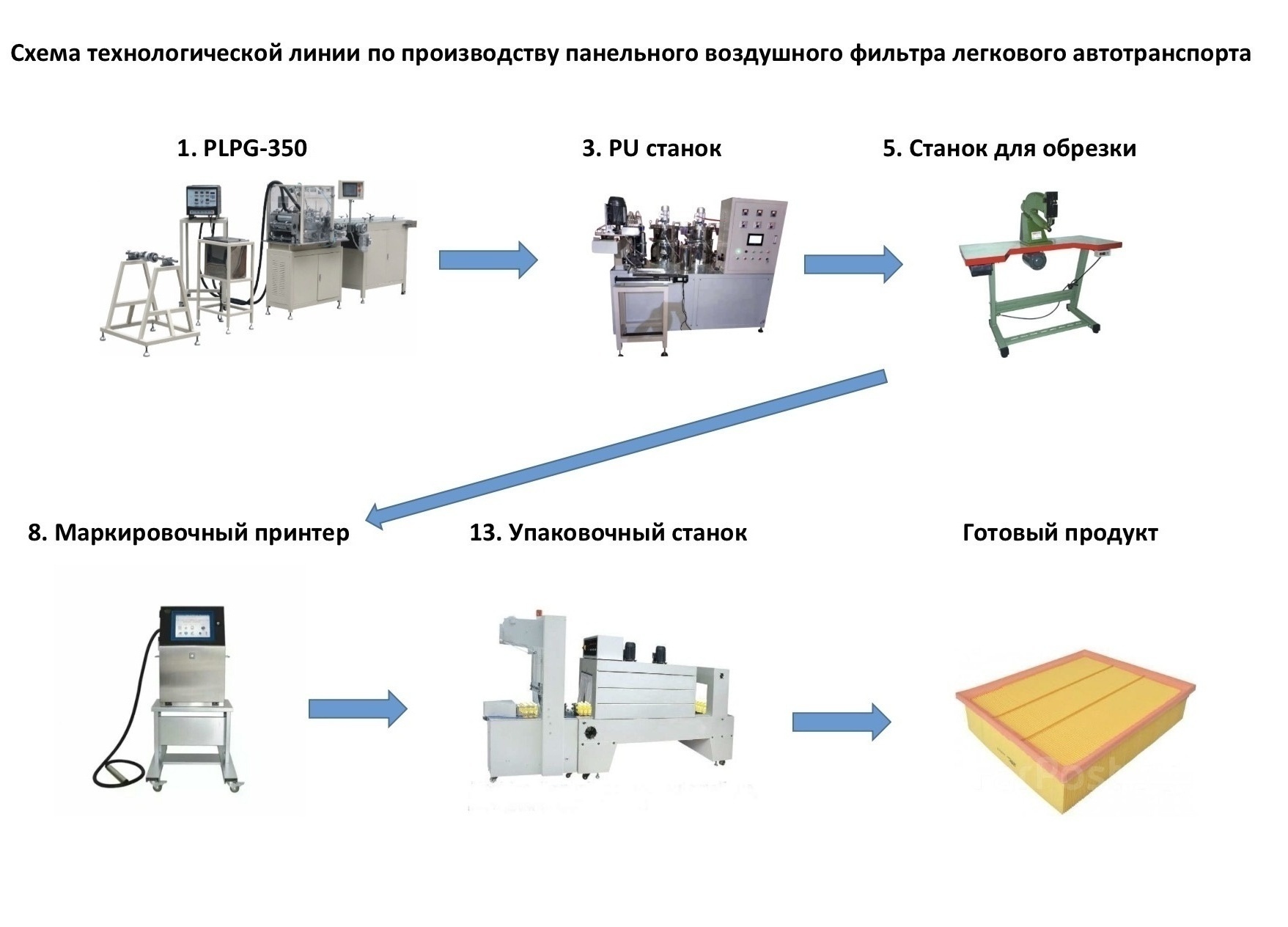 - Линия состоит из нескольких станков, закрывающих основные этапы производства