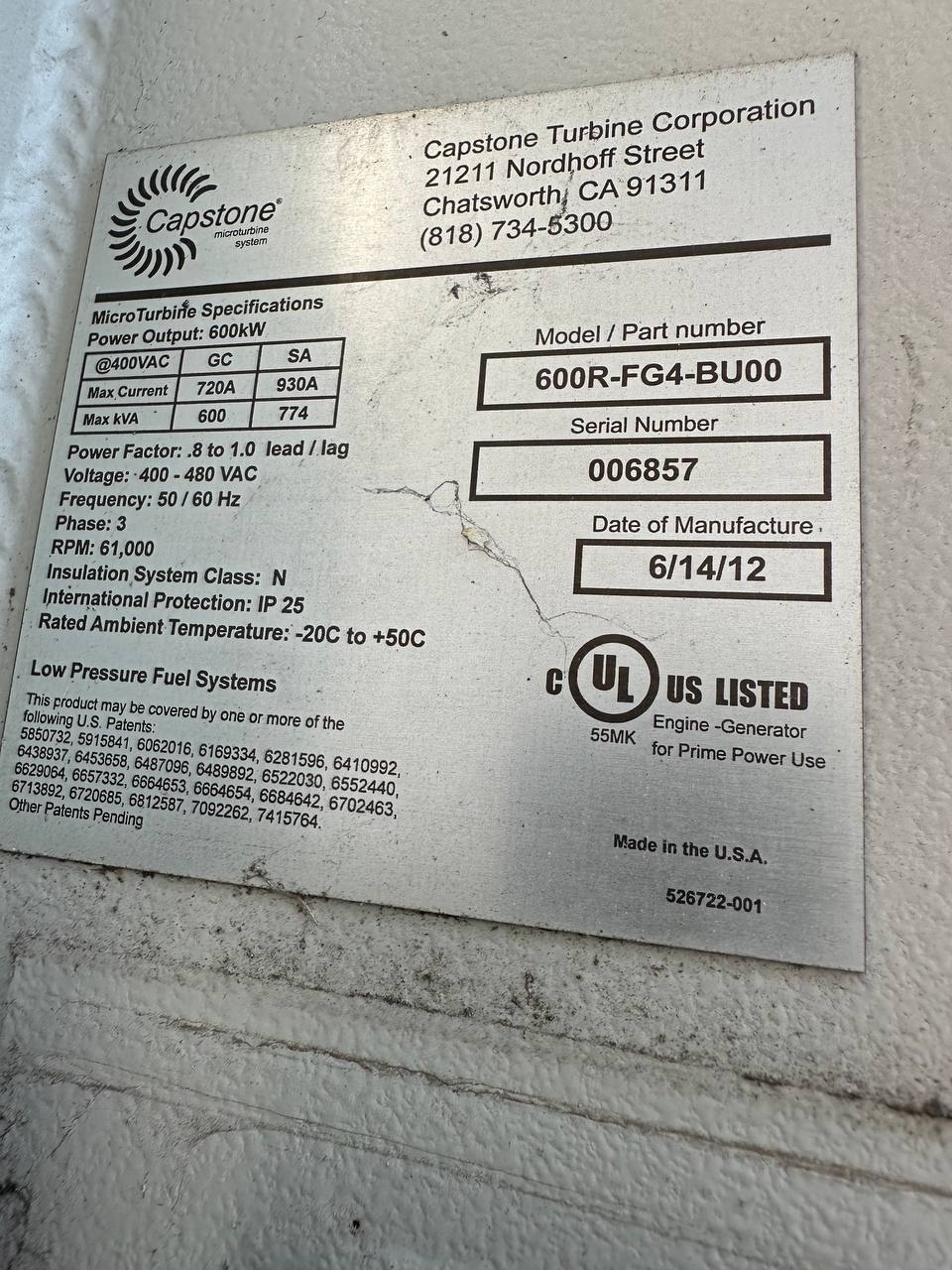 Микротурбинный генератор Capstone 1000 600 квт Б/У - Продам в Можайске