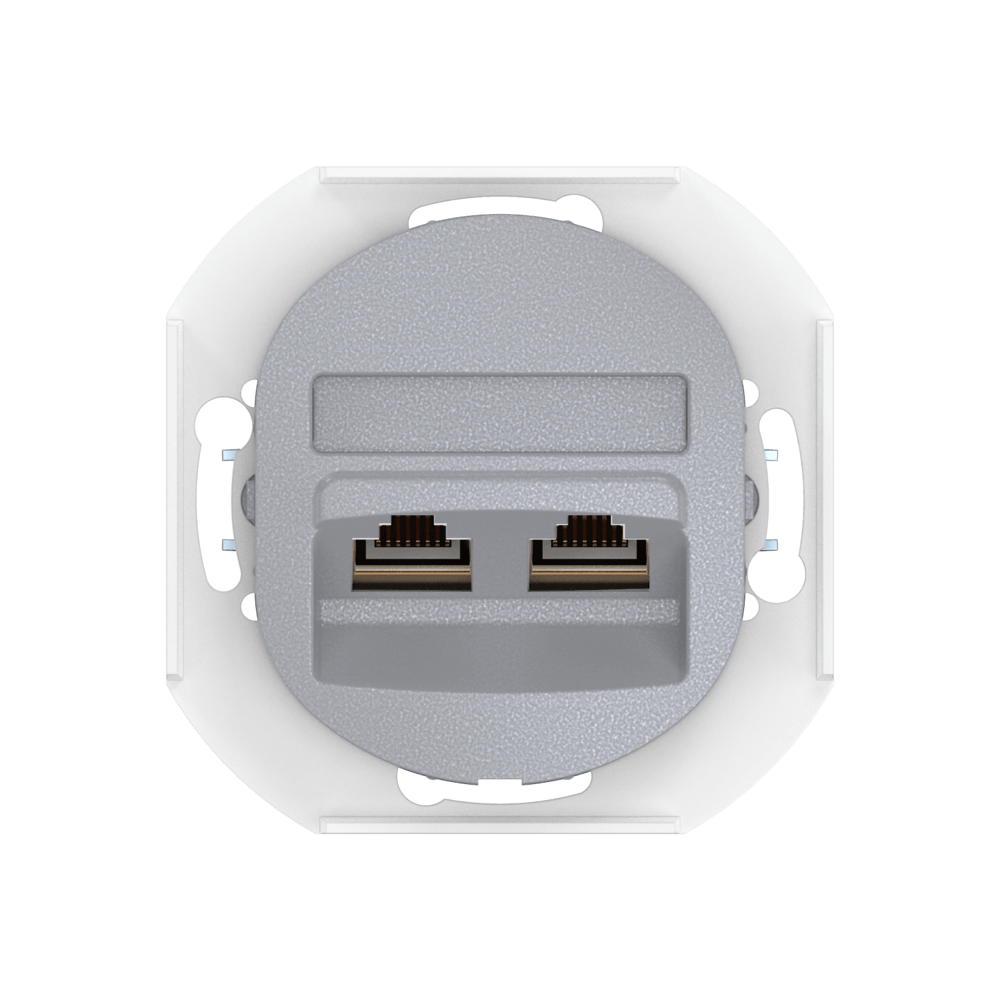 Встраиваемая двойная компьютерная розетка CADUCEUS ALING EON с модулями Keystone RJ45 8P8C cat.6 FTP, механизм