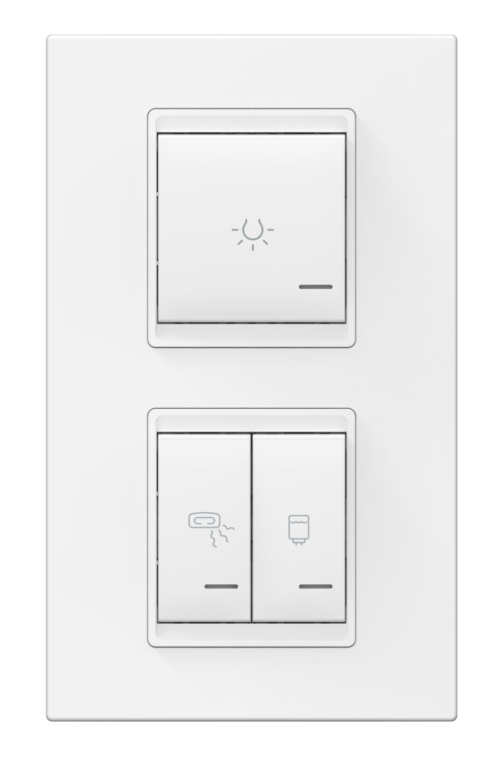 Комплектация: 3х выключатель СП, 16А (арт. 72105) + 1х клавиша 2М (арт. 73402) + 1х клавиша 1М (арт. 73205) + 1х клавиша 1М (арт. 73204) + 2х рамка монтажная 2М (арт. 71102) + 1х рамка декоративная 2М+2М (арт. 70142) + 2х коробка установочная (арт. 700) + 4х винт М3,5х20 (арт. 71202)