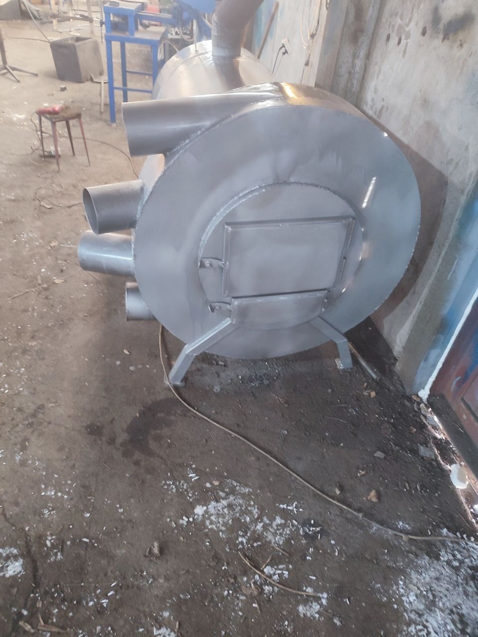 Теплогенератор предназначен для отопления помещений и нагрева воздуха для технологических нужд. Работает на любых видах топлива таких как дрова, уголь, масло отработанное.