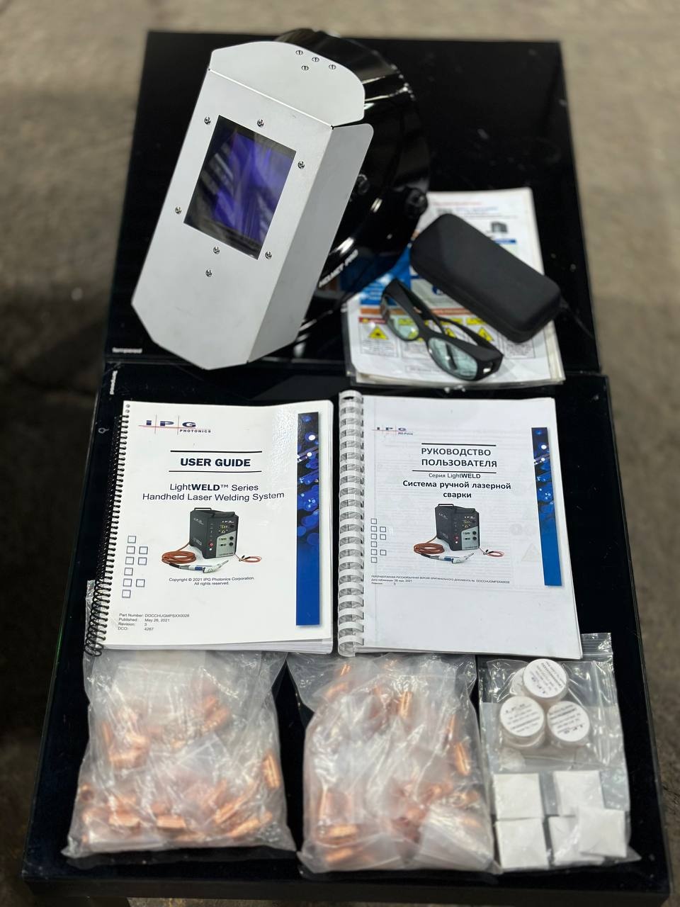 · Большой набор НОВЫХ расходных материалов, приобретавшихся отдельно (защитные стекла, сопла, возможно, дополнительные линзы и т.д. — уточняется при осмотре).