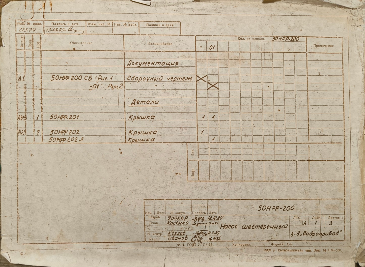 | 50НРР-200 СБ | Насос шестерённый | 1 | Сборочный чертёж |