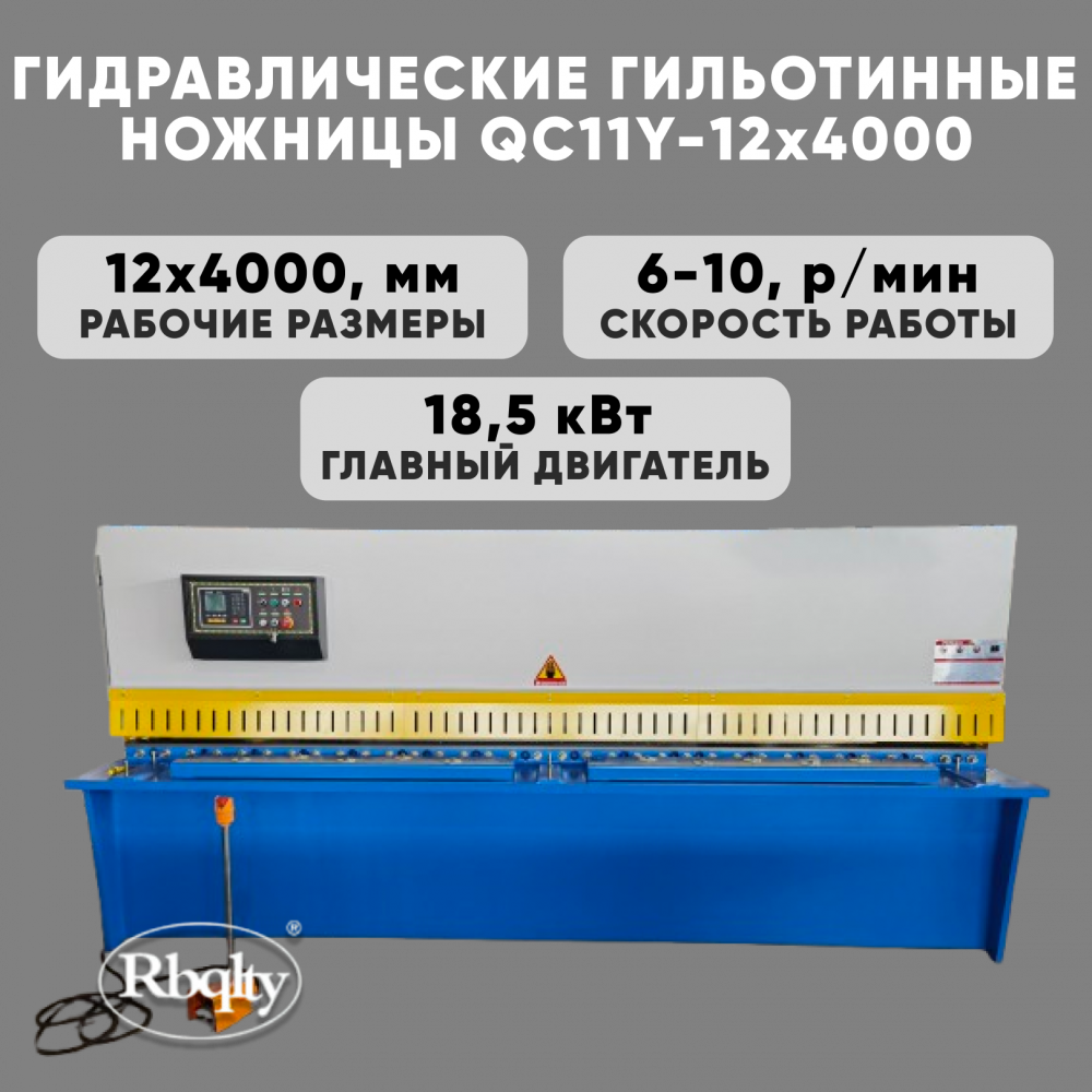 Гидравлические гильотинные ножницы RBQLTY QC11Y-12X4000 — надежный промышленный станок для точной резки листового металла толщиной до 12 мм и рабочей длиной 4000 мм.