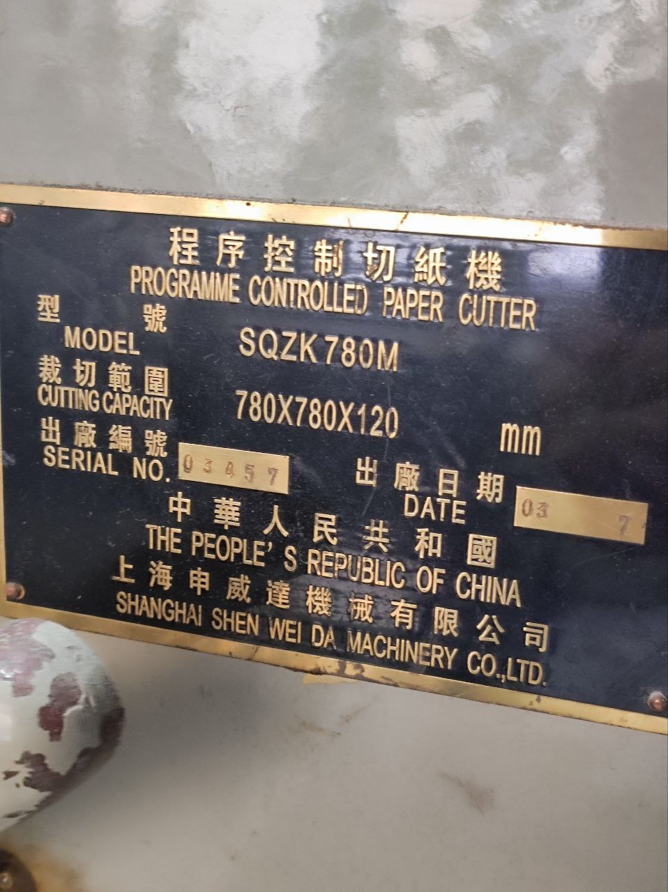 - Резак для бумаги Schenweida SQZK780M. 2003 г.в. Жидкокристалический дисплей, 5000 ячеек памяти, фотозащита, воздушный стол. Идеальное состояние. За все время не было серьезных поломок. Качество превосходит европейских производителей. Все работает идеально. Стоимость 850 тыл. руб.