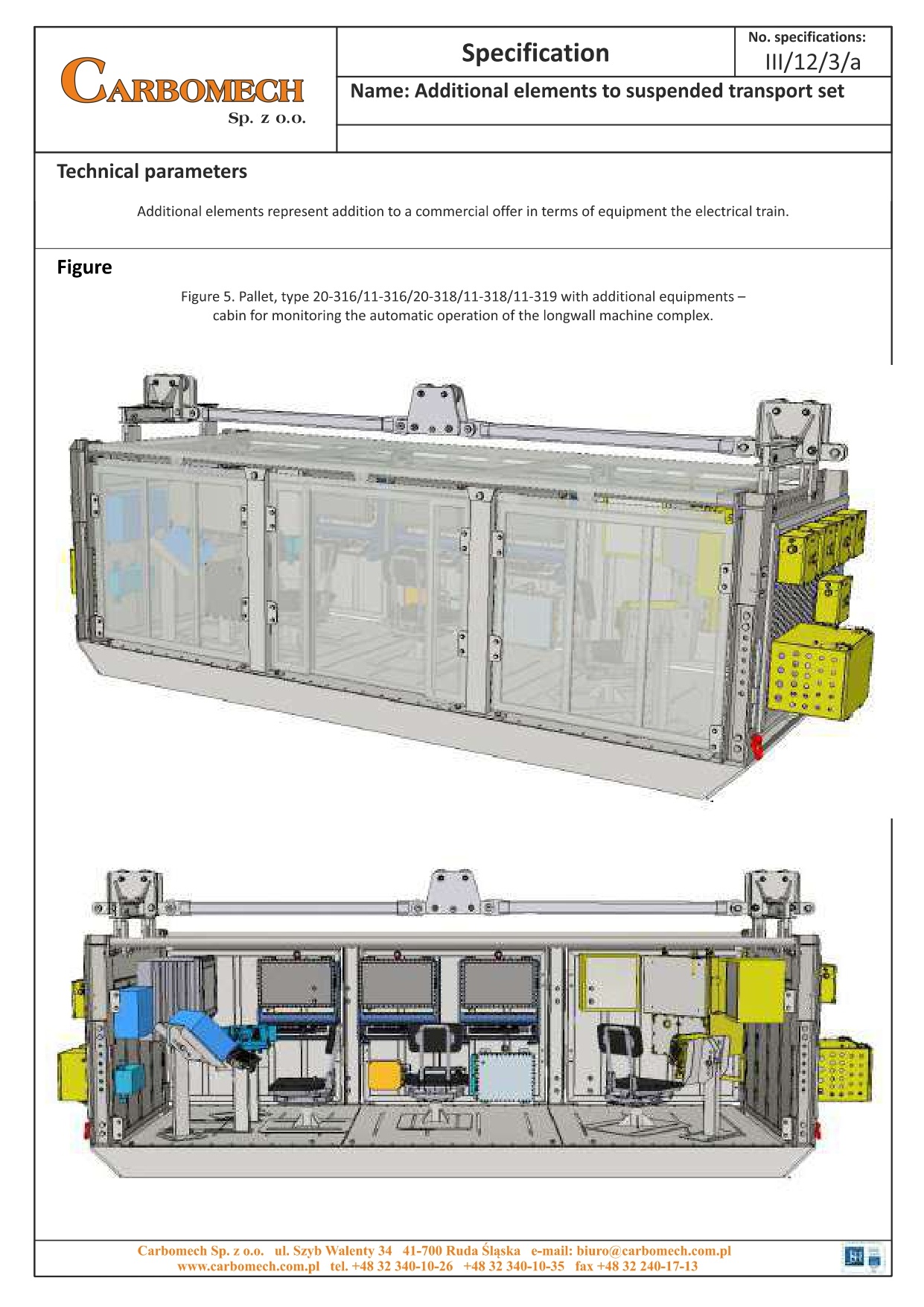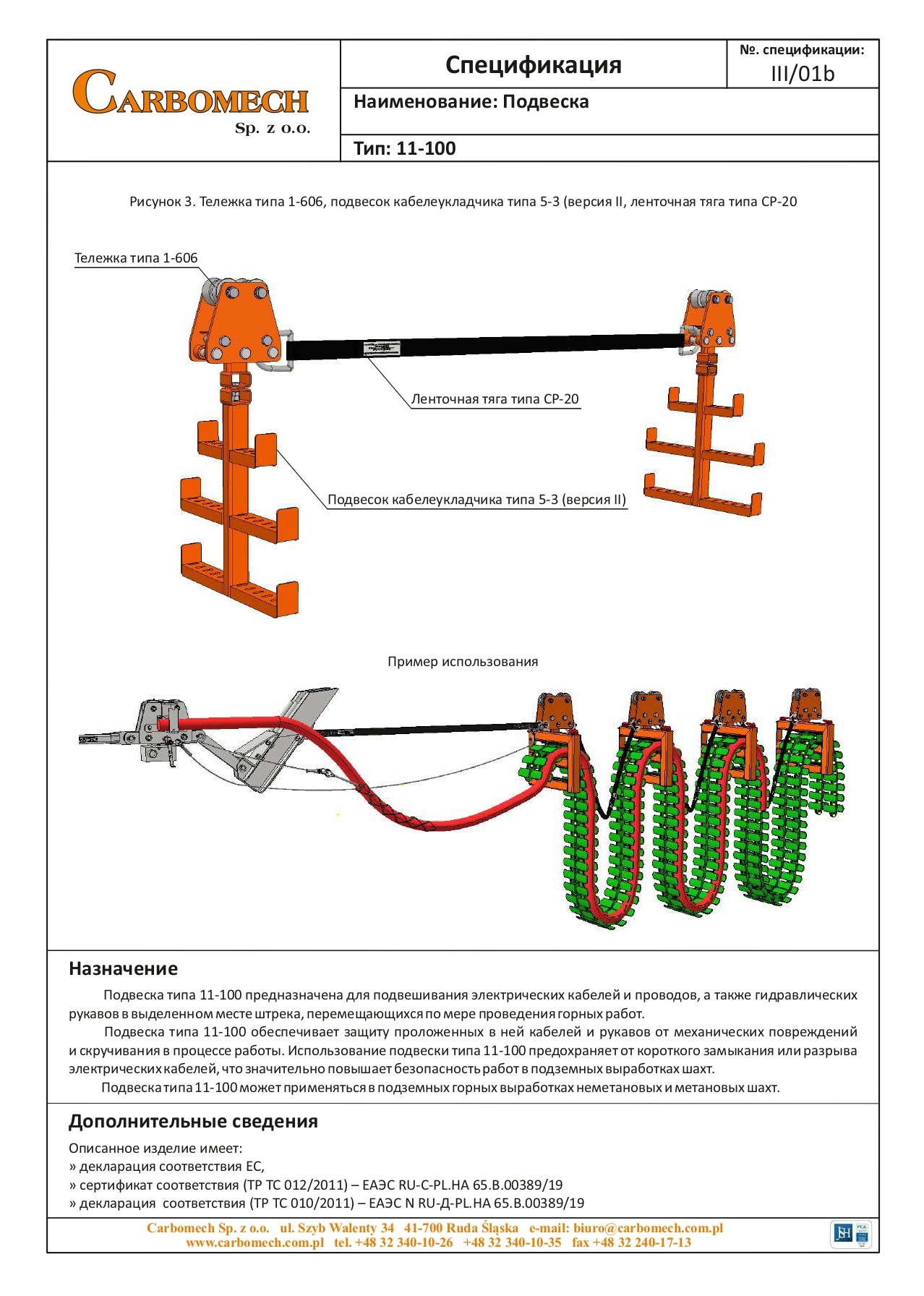 CARBOMECH LTD разработать комплексные решения, включающие как движение по трассе, так иконтакторного оборудования (много контактные выключатели), трансформаторные подстанции, а также сети кабелей и шинопроводов перед забоем или за ходом выработки. Транспортное оборудование конкретного стенового или тротуарного комплекса. Система подвески, удержания от сползания и система передвижки по подвесной монорельсовой дороге оборудования энергопоезда механизированного лавного комплекса.